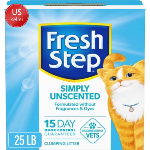 Dear Valued Customers, Before you place your order, we’d like to share a few important details to ensure a smooth shopping experience: Fresh & Long-Lasting Products: All items are recently produced with a shelf life of 12+ months. If you encounter any issues, simply contact us for a full refund—no questions asked. Free Shipping (with Some Limitations): Currently, we cannot deliver to warehouse addresses or forwarding addresses. We’re actively working to expand our shipping coverage, but if your location isn’t serviceable, you’ll receive an automatic full refund—no risk to you. Eco-Friendly & Branded Packaging: To keep costs low (and pass the savings to you!), we ship in recyclable boxes with our logo. Your satisfaction is our priority. If you have any questions, just reply to this message—we’re happy to help! Thank you for trusting us. Jessica Description Get odor control in your cats litter box with Fresh Step Simply Unscented Clumping Litter. This clumping litter uses clay, carbon and minerals to fight odors without added fragrances or dyes. Specially formulated to inhibit the growth of bacterial odor on the litter, Fresh Step unscented cat litter with Activated Charcoal Technology has the same 15 day odor control as scented Fresh Step cat litter to keep the litter box smelling fresh. The high quality clumping cat litter clumps tight for easy scooping and helps prevent stinky crumbles from being left behind in the kitty litter box. In addition to easy cat litter clumping, this litter has a low dust formula to help keep your floors and other surfaces cleaner. Created with your cat's health and happiness in mind, no added fragrance Fresh Step clumping cat litter is recommended by veterinarians. Enjoy more catnaps and cuddle time with your kitty when you choose Fresh Step cat litter.Usage Directions: For best results, do not mix with non-clumping cat litter. For first time use, start with an empty, clean cat litter box. Fill your clean litter box with 3 to 4 inches of Fresh Step Simply Unscented Cat Litter. Remove clumps and solids daily and dispose in trash. Do not flush. The rest of the litter stays fresh. Add more litter to refresh your litter box each time you scoop. Maintain level of litter at 3 to 4 inches.Caution Statements: As a reminder, especially to pregnant women and immunosuppressed persons, cat feces can sometimes transmit a disease called toxoplasmosis. Therefore, always remember to wash hands thoroughly after handling used cat litter. For further information, consult your doctor. Unused cat litter poses no toxoplasmosis threat. Caution: Do not use this product as a traction aid because product becomes slippery and slick when wet. highlights FRESH STEP UNSCENTED CAT LITTER: One 25 lb. box of Fresh Step Simply Unscented Clumping Litter, activated charcoal kitty litter that's perfect for those who prefer Fresh Step cat litter unscented PREVENTS BACTERIAL ODOR GROWTH ON LITTER: Unscented litter with Activated Charcoal Technology has the same 15 day odor control as scented Fresh Step cat litter RAPID LIQUID ABSORPTION: Fresh Step Clumping Cat Litter quickly absorbs liquids, helping to maintain a clean litter box environment for your cat's comfort FORMS TIGHT CLUMPS: Kitty litter clumping makes scooping easy and prevents crumbles from being left behind NO ADDED DYES OR FRAGRANCES: Unscented clumping litter uses clay, carbon and minerals to stop odors on contact without the use of added fragrances or dyes LOW DUST FORMULA: Low dust Fresh Step clumping cat litter formula helps keep your floors and cat litter box area cleaner VETERINARIAN RECOMMENDED: Created with your cat's health and happiness in mind, this unscented Fresh Step clumping cat litter is recommended by veterinarians FIND YOUR FRESH STEP: Whether you have one fab feline or a family of fur friends, explore Fresh Step’s full line of cat litter formulas to find the purr-fect litter for you