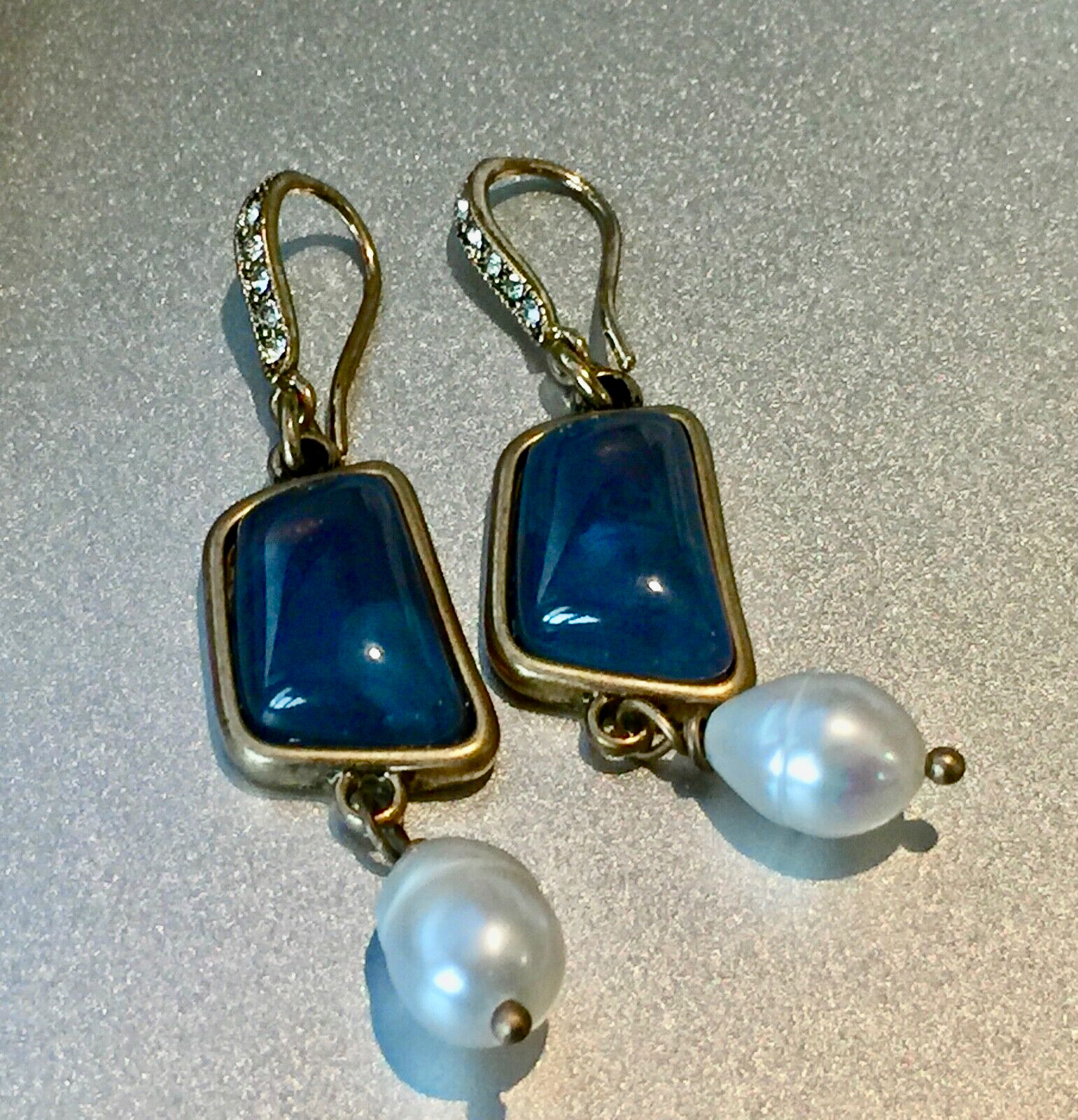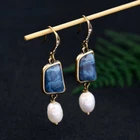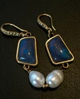 Beautiful Fresh Water Pearl & Blue Stone Drop Dangle Long Earrings in Gold Plated Finish We carry other styles of beautiful earrings at Our eBay Store Earrings Dimensions: 2.0 inch (long) x 1/2 inch (wide) Note : Please refer to the above earrings measurement for their actual size and dimensions Earrings Fastening: French Wire (as in images) Metal: 10k Gold plated copper Color: As in images. Please read note below. Note : Earrings color might be slightly different in reality due to screen differences and due to the use of different backgrounds while photographing Packaging: Comes with a Free Jewelry Gift Pouch/ jewelry gift box Please contact us with any questions you may have. Thanks for Shopping with us!