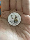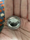 Handmade Blue Slag Stained Glass Pearl Beaded Pin Brooch 1.25" Signed