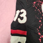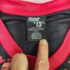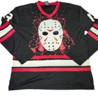 Embrace your inner horror fan with this eye-catching Friday the 13th hockey jersey. Featuring Jason Voorhees' iconic mask splattered with blood-red details, it's perfect for Halloween parties, horror movie marathons, or showing off your love for classic slasher films. The long-sleeve design and comfortable fit make it ideal for cooler weather or layering. Stand out at your next costume party or casual hangout with friends! Color: Multicolor Type: Jersey Department: Unisex Adults Sleeve Length: Long Sleeve Performance/Activity: Costume, Cosplay, Fan Apparel Style: Jersey Material: 100% Polyester Neckline: V-Neck Character: Jason Voorhees, Friday the 13th Features: Graphic Print, Contrasting Trim Fit: Regular Pattern: Graphic Print Keywords: Friday the 13th, Jason Voorhees, Hockey Jersey, Horror Movie, Costume, Halloween, Slasher Film, Fan Apparel, Long Sleeve, Graphic Tee