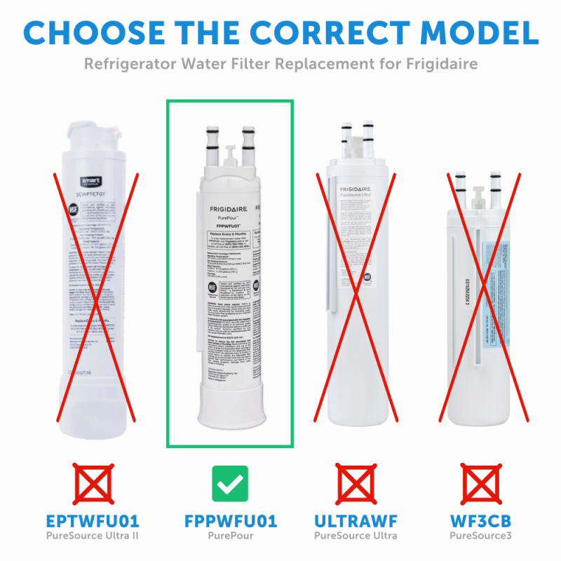 eBay Product Information: · The Frigidaire PurePour PWF-1 water filter (FPPWFU01) produces cleaner, better tasting drinking and cooking water, including all dispensed drinking water, as well as the water used to produce ice. · Make sure this fits by entering your model number. · Make safe water second nature: Certified to reduce contaminants and keep great tasting water flowing for you and your family Keeps great tasting water flowing up to 6-months - replace your water filter every 6-months or 200-gal., whichever comes first. Filters Out up to 99% of Contaminants: Reduces chlorine taste & odor, particulates Class I, cysts, lead, mercury, pesticides, insecticides, BPA, asbestos, pharmaceuticals and more. Product Installation: Push to lock and release: Easy install always review your use and care guide before installation, to install slide new filter into housing and push until it locks into place Product Used: Sears, Whirlpool, Kenmore refrigerators, Refrigerator Ice & Water Filter. Specifications: Package Quantity: 1 Piece Weight: 0.1 pounds. Dimensions: 9.5 inches (length) x 2.3 inches (outside diameter) Filter Life (Gallons): 200 gallons or 6 months, whichever comes first. Flow Rate(GPM): 0.65 gallons per minute. Temperature range( °F): 33-100 Pressure Range (psi): 30-100 Micron Rating (Nominal): 0.5 Water Quality Requirements: Municipal Water/Well Water. Power (W): No Voltage (V): No Media: Carbon Block. Primary Filter Media: Activated Carbon Block. Used in Brands: Frigidaire Model: FPPWFU01. Manufacturer's Id: FPPWFU01 Certification: NSF/ANSI Standard 42, 53 and 401, WQA PurePour PWF-1 FPPWFU01 Compatible with the following part numbers: FPRU19F8WF, FRFG232LAF, FRFC2323AS, FRSC2333AS, FRSC23L3AF, FRFN2823AS, FRFS2823AD, FRFS2823AS Shipping - Free To USA.