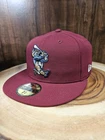 Elevate your headwear collection with the Frisco Rough Riders New Era 59Fifty Fitted Hat. A timeless piece of fan pride, this cap is designed for those who follow Minor League Baseball and appreciate the rich heritage of the sport. The hat comes in a striking burgundy hue, complementing any casual or sporty ensemble. Crafted for comfort and style, the cap features a solid pattern and is fitted to a size 7 5/8, ensuring a perfect fit for your game day attire or everyday wear. The New Era brand is synonymous with quality, making this baseball cap a versatile accessory for various occasions, from a day at the ballpark to a casual business meeting or social gathering.