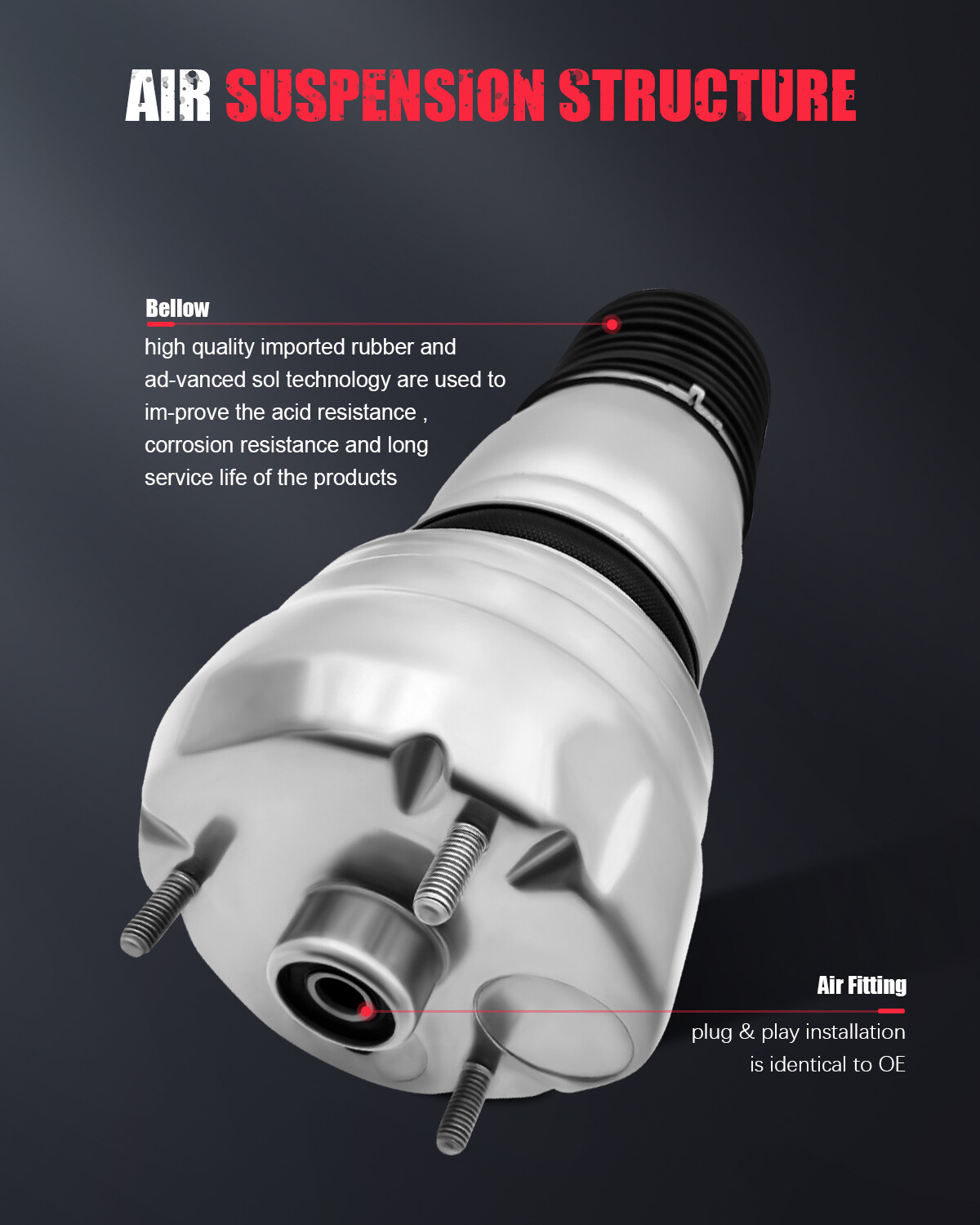 Notes: This is only a repair kit and cannot be used in its entirety.Please double confirm the compatibility as well as the OEM number before purchasing. *Compatibility Chart 1, You can distinguish specific model of an automobile by VIN(Vehicle Identification Number). 2, VIN(Vehicle Identification Number) consists of total 17 English letters and arabic digits. 3, VIN does not include the letters I (i), O (o), and Q (q) (to avoid confusion with numerals 1 and 0). Porsche Panamera 2014-2016 Porsche Panamera S (970 Chassis) 2014-2016 Porsche Panamera GTS (970 Chassis) 2014-2016 Porsche Panamera Turbo (970 Chassis) *Generation & Evolution: Front Pair Air Suspension Air Spring For Porsche Panamera GTS Turbo Base 14-16 Notes: This is only a repair kit and cannot be used in its entirety . Please double confirm the compatibility as well as the OEM number before purchasing. *Compatibility Chart 1, You can distinguish specific model of an automobile by VIN(Vehicle Identification Number). 2, VIN(Vehicle Identification Number) consists of total 17 English letters and arabic digits. 3, VIN does not include the letters I (i), O (o), and Q (q) (to avoid confusion with numerals 1 and 0). Porsche Panamera 2014-2016 Porsche Panamera S (970 Chassis) 2014-2016 Porsche Panamera GTS (970 Chassis) 2014-2016 Porsche Panamera Turbo (970 Chassis) * Generation & Evolution: Porsche Panamera 970 Chassis G1 First generation (2010-2016) 971 Chassis G2 Second generation (2017-present) *Platform Drive Layout : Front Engine-Rear Wheel Drive The Panamera, S, Hybrid and Diesel models. Front Engine-Four Wheel Drive Panamera 4, 4S, and GTS as the Turbo and Turbo S, called Porsche Traction Management (PTM). *Features and Benefits: Made of high quality raw materials, effectively reduce air leakage, strong sealing All parts are hand inspected off the line before packaging and once again by our team before shipment. According to the original factory specifications. Perfect match for the original car. Easy installation. Stable characteristics, high reliability. Aftermarket Products with Premium Quality. Precisely engineered to absorb shock and vibration from the road Return policy: Enjoy 30 days return and exchange * Frequently Asked Questions : How to prevent the damage of air springs/How to extend the service life of air springs/struts etc.? An air strut with separable air springs If your vehicle offers a separable air suspension (Audi Allroad A6 C5, Mercedes-Benz W164, BMW X5, etc.), you should regularly (about once a week) lift the car to the maximum position, and remove dirt with a high-pressure cleaner (keep the cleaner at a distance to the air spring about 30 cm/12 inches, otherwise water pressure can damage the air spring). The highest position may vary depending on your model and regulation options. Therefore, please test this by trying the different modes available to you (Sport, comfort, dynamic, off-road) and choose the one that sets your vehicle to the highest position. The dirt will most likely be found under the fold of the pneumatic chambers. If you find a frozen layer of bitumen on the piston guide (the part of a strut on which the air spring is installed), it is recommended to clean it as well. Whenever possible, avoid riding on fresh asphalt, as fresh bitumen mixed with sand immediately results in a build-up of abrasives on the piston and in turn contributes to accelerated wear and tear of the air spring. A complete air suspension shock Many cars such as Mercedes W220 or W211 are set up with a complete air strut - shock absorber and air spring visually form a complete spare part. In many cases, you can easily recognize these by the metal cups with which the air spring is tightly mounted. To best avoid any damage, we highly recommend to regularly check the condition of the dust protection seals of the air strut. What is the difference between an air spring and an air strut? The air spring is a part of the air strut. Some vehicles (e.g. Mercedes ML) allow you to change the air spring separately. At our online shop you have the opportunity to buy either the whole air strut or only the air spring. For some type of vehicles it is not possible to change the air spring separately. In this case the whole air strut should be replaced. Which side of my car is the Right and Left? The right and left sides of an automobile are determined as if sitting in the car facing forward. Thus, the left side is on the left when sitting in the car facing forward, and the right side is on the right. For American cars, the driver’s side is on the left, and the passenger sits to the right of the driver. For cars in Japan, Britain, Ireland, the Bahamas and some other former British colonies -- where they drive on the left side of the road -- the passenger sits on the left side, and the driver (along with all the driving controls) is on the right. What does 4MATIC mean? 4MATIC is the marketing name of a four-wheel drive system developed by Mercedes-Benz. It is designed to increase traction in slippery conditions. What does AIRMATIC mean? AIRMATIC is a Mercedes-Benz trademark for vehicles with air suspension systems. Compared with a conventional steel suspension, the AIRMATIC air suspension provides advantages in terms of handling safety and ride comfort. The AIRMATIC air suspension automatically adjusts the damping force on each wheel according to the current state of the road. What does ABC mean? ABC (Active Body Control) is a registered Mercedes-Benz trademark. It is a high-quality suspension system, which automatically adapts the suspension setting to the respective driving situation. There is also a crosswind stabilisation integrated in ABC systems. *OEM Part Number: 97034305135 97034305133 97034305134 97034305137 *Item Specifications: Key Words: Pair Front Air Suspension Springs For Porsche Panamera RWD/AWD 2014-2016 Package Includes: Pair for Front Left and Right Air Suspension Springs Notes : This is only a repair kit and cannot be 