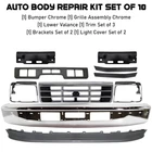 Hype_Turbo Free Shipping & Returns 3-4 days Shipping 30 Days Money Back 100% Satisfaction Front Bumper Chrome & Grille Assembly Kit For 1992-1996 Ford F-150 F-250 F-350 REPLACEMENT BUMPER KIT Manufactured from top quality components, this is your best option and inexpensive replacement for your rebuild, repair, and maintenance needs - an OE replacement product for your damaged or aged factory part. Replacement - the most affordable brand name for replacement parts that you need! Replacement is a professional brand for autobody, lighting parts, electrical, brake, suspension, intake and exhaust, and cooling and heating products. All Replacement brands include 2-year, unlimited-mileage warranty. NOTES Location : Front & Lower Brand New in the Box - Fit and Quality Guaranteed! Material Steel & Plastic Anticipated Ship Out Time 1-4 business day Quantity Sold Auto Body Repair Kit Set Of 10 Product Fit Direct Fit Replaces OE Number AF721 Color/Finish Black Paintable / Chrome Recommended Use OE Replacement Replaces Partslink Number AF721 Vehicle Body Type 4-Door Components [1] Bumper Chrome [1] Grille Assembly Chrome [1] Lower Valance [1] Trim Set of 3 [1] Brackets Set of 2 [1] Light Cover Set of 2 Prop 65 Warning WARNING: This product can expose you to chemical which is known to the State of California to cause cancer and birth defects or other reproductive harm. For more information go to www.P65Warnings.ca.gov. Shipping Notes We have multiple warehouses in US and will choose the nearest one for shipping according to your address and our inventory. Ford : 1993-1996 Bronco Eddie Bauer Sport Utility, Old Body Style, For Models With Eddie Bauer Package 1994-1996 Bronco XLT Sport Utility, Old Body Style, For Models With Eddie Bauer Package 1992 Bronco (submodel: Eddie Bauer, XLT) Sport Utility, For Models With Eddie Bauer Package 1995-1996 F-150 Eddie Bauer For Models With Bumper Cut Outs 1993-1996 F-150 XLT For Models With Bumper Cut Outs 1992 F-150 XLT Lariat For Models With Bumper Cut Outs 1995-1996 F-250 (submodel: Eddie Bauer, Special, XLT) Old Body Style, For Models With Bumper Cut Outs 1995 F-350 Eddie Bauer For Models With Bumper Cut Outs 1995-1996 F-350 Special For Models With Bumper Cut Outs 1993-1997 F-350 (submodel: XL, XLT) For Models With Bumper Cut Outs