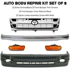 Hype_Turbo Free Shipping & Returns 3-4 days Shipping 30 Days Money Back 100% Satisfaction Front Bumper Chrome & Grille Assembly Kit For 1998-2000 Toyota Tacoma 2WD REPLACEMENT BUMPER KIT Manufactured from top quality components, this is your best option and inexpensive replacement for your rebuild, repair, and maintenance needs - an OE replacement product for your damaged or aged factory part. Replacement - the most affordable brand name for replacement parts that you need! Replacement is a professional brand for autobody, lighting parts, electrical, brake, suspension, intake and exhaust, and cooling and heating products. All Replacement brands include 2-year, unlimited-mileage warranty. NOTES Location : Front & Lower Brand New in the Box - Fit and Quality Guaranteed! Material Plastic & Steel Anticipated Ship Out Time 1-4 business day Quantity Sold Auto Body Repair Kit Set Of 5 Product Fit Direct Fit Replaces OE Number AF726 Color/Finish Black / Chrome Recommended Use OE Replacement Replaces Partslink Number AF726 Vehicle Body Type 2-Door Components [1] Grille Chrome/Black [1] Front Bumper Trim Chrome [1] Front Bumper Cover Material Black [1] Signal Lamps Assembly (Come With Bulb) Prop 65 Warning WARNING: This product can expose you to chemical which is known to the State of California to cause cancer and birth defects or other reproductive harm. For more information go to www.P65Warnings.ca.gov. Shipping Notes We have multiple warehouses in US and will choose the nearest one for shipping according to your address and our inventory. Toyota : 1998-2000 Tacoma DLX