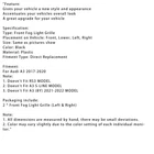 A Fantastic Shop Send us a message Our Store Seller Profile Feedbacks Save this seller Contact Front Bumper Grill Fog Light Cover Lamp Frame Trim Fit Audi A3 2017-2020 Feature: Gives your vehicle a new style and appearance Accentuates your vehicles overall look A great upgrade for your vehicle Specification: Type: Front Fog Light Grille Placement on Vehicle: Front, Lower, Left, Right Size: Same as pictures show Color: Black Material: Plastic Fitment Type: Direct Replacement Fitment: For Audi A3 2017-2020 Note: 1. Doesn't Fit RS3 MODEL 2. Doesn't Fit A3 S-LINE MODEL 3. Doesn't Fit A3 (8Y) 2021-2022 MODEL Packaging include: 2 * Front Fog Light Grille (Left & Right) Note: 1. All dimensions are measured by hand, there may be small deviations. 2. Color may vary slightly due to the color setting of each individual monitor. About US About Our Items We strive to describe all items accurately and thoroughly, with the utmost care and attention to detail. However, to ensure a mutually satisfactory transaction, we kindly ask for your assistance in thoroughly reviewing the item description and photos, and addressing any questions before placing a bid. Customer Satisfaction We stand behind our commitment with exceptional service, a 100% money-back guarantee, and a dedication to customer satisfaction. I am readily available to address any inquiries or concerns you may have, both before and after your purchase. Our aim is to ensure your shopping experience is enjoyable and that you're delighted with your purchase. Feedback Your feedback is crucial to our business's success. If you're satisfied with your purchase and the service you received, we would greatly appreciate your positive feedback, along with an overall Detailed Selling Rating (DSR) of 5. Please take a moment to leave us positive feedback. Our eBay account is set up to automatically reciprocate positive feedback once yours is received. If you're considering leaving neutral/negative feedback or opening an eBay/PayPal case, we encourage you to reach out to us immediately. We're committed to resolving any issues to the best of our ability. Shipping Parcel will be shipped using Standard shipping method. For security purposes, items will be shipped exclusively to the confirmed address on Paypal. Please ensure your Shipping address is up to date before proceeding with payment. Estimated delivery time within the United States ranges from 3 to 10 business days, depending on your location. Returns We accept returns within 60 days from the date the buyer receives the item. If the item is found to be defective upon receipt, the customer has up to 30 days from the date of receipt to request an exchange for a new item or a refund. For returns due to a change of mind, we accept items in their original selling condition. However, if the package has been opened due to a mistaken order, it does not qualify for our return policy. Please note that the buyer is responsible for covering the cost of return postage. If you encounter any issues, please reach out to us via eBay message, and we'll respond within 24 hours.