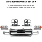 Hype_Turbo Free Shipping & Returns 3-4 days Shipping 30 Days Money Back 100% Satisfaction Front Bumper Grille & Headlight Assembly Kit For 2005-2006 GMC Sierra 1500 REPLACEMENT BUMPER KIT Manufactured from top quality components, this is your best option and inexpensive replacement for your rebuild, repair, and maintenance needs - an OE replacement product for your damaged or aged factory part. Replacement - the most affordable brand name for replacement parts that you need! Replacement is a professional brand for autobody, lighting parts, electrical, brake, suspension, intake and exhaust, and cooling and heating products. All Replacement brands include 2-year, unlimited-mileage warranty. NOTES Location : Front & Lower Brand New in the Box - Fit and Quality Guaranteed! Material Steel, Plastic Anticipated Ship Out Time 1-4 business day Quantity Sold Auto Body Repair Kit Set Of 7 Product Fit Direct Fit Replaces OE Number AF735 Color/Finish Chrome / Primed Recommended Use OE Replacement Replaces Partslink Number AF735 Vehicle Body Type 4-Door & 2 Door Components [1] Grille Chrome Shell [1] Head Light Set of 2 [1] Signal Lamp Pair [1] Head Light Bazel Set of 2 Prop 65 Warning WARNING: This product can expose you to chemical which is known to the State of California to cause cancer and birth defects or other reproductive harm. For more information go to www.P65Warnings.ca.gov. Shipping Notes We have multiple warehouses in US and will choose the nearest one for shipping according to your address and our inventory. GMC : 2005 GMC Sierra 1500 Base 6 Cyl 4.3L 2005 GMC Sierra 1500 WT 6 Cyl 4.3L 2005 GMC Sierra 1500 Base 8 Cyl 5.3L 2005 GMC Sierra 1500 Base 8 Cyl 4.8L 2005 GMC Sierra 1500 SLE 8 Cyl 5.3L 2005 GMC Sierra 1500 SLE 8 Cyl 6.0L 2005 GMC Sierra 1500 SLE 8 Cyl 4.8L 2005 GMC Sierra 1500 SLT 8 Cyl 5.3L 2005 GMC Sierra 1500 WT 8 Cyl 4.8L 2005 GMC Sierra 1500 WT 8 Cyl 5.3L 2005 GMC Sierra 1500 SLT 8 Cyl 6.0L 2005 GMC Sierra 1500 Hybrid 8 Cyl 5.3L 2005 GMC Sierra 1500 Denali 8 Cyl 6.0L 2006 GMC Sierra 1500 SL 6 Cyl 4.3L 2006 GMC Sierra 1500 WT 6 Cyl 4.3L 2006 GMC Sierra 1500 SLE 8 Cyl 5.3L 2006 GMC Sierra 1500 SLE 8 Cyl 6.0L 2006 GMC Sierra 1500 SLE 8 Cyl 4.8L 2006 GMC Sierra 1500 SLT 8 Cyl 5.3L 2006 GMC Sierra 1500 WT 8 Cyl 4.8L 2006 GMC Sierra 1500 WT 8 Cyl 5.3L 2006 GMC Sierra 1500 SL 8 Cyl 4.8L 2006 GMC Sierra 1500 SL 8 Cyl 5.3L 2006 GMC Sierra 1500 SLT 8 Cyl 6.0L 2006 GMC Sierra 1500 Hybrid 8 Cyl 5.3L 2006 GMC Sierra 1500 Denali 8 Cyl 6.0L