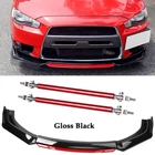 Feature: Made of Updated durable and sturdy ABS plastic, adding stiffeners, no deformation in long-term use. More longer and wider than others. Provide an elegant and personalized appearance. Prevent the car from being scraped and improve the level of the decoration of the car. Come with screws, More convenient installation and stable installation. This is a set(4 pieces) front bumper cover lip front spoiler *Instruction Not Included, Professional Installation Is Highly Recommended.* Specification: Type:Front Bumper Lip Body Kit Spoiler Material:High quality ABS Plastic Color:Gloss Black & Red Weight: about 3.5 lbs Placement on Vehicle: Front;Lower Strut Rods ★ Length: The length can be adjustable from 7.87" to 11" (200-279mm) ★ Material: Stainless Steel ★ Quatity: 2 x Stainless Steel Bumper Lip Splitter Tie Rod Bars. ( Stainless steel has weldability, corrosion resistance and heat resistance.) ★ Position: This exquisite and compact lever is mainly fixed on the body components (front and rear surround, skirt, head and tail lip), and can also be installed in the car center console or interior trim panel ★ Require: Product will require drilling holes into the bumper and/or lip/diffuser to attach safely to the vehicle. Package Included: 1 x Set Of Front Bumper Cover Lip Front Spoiler(4 Pieces) 2 X Strut Splitter Rods 1 x Bag Of screws Installation Tips(Professionals are also recommended) 1.Clean the bottom/around of front bumper 2.Adjust the left and right front lip positions 3.Fix the left and right front lip with screws 4.Check if the side lips is in the right position 5.The middle part of the front lip is placed abover the side lips 6.Connect 4 pieces into one piece and fasten them with screws. 7.Put front bumper lip under the bumper and adjust it to a proper position. Fix the product tightly to the bottom of bumper with screws. (stick some double-sided tape to help fix it as needed)