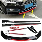 ackage 1. Front Bumper Lip Spoiler Splitter(5pcs) This front bumper lip splitter is fit for most models with front bumper size around 1750mm~1950mm. Feature: -Direct Fit. -Easy install and durable use. -Great quality and great Fitment. -Correct Connector No cutting or splicing. -Strict quality control standards to Build and test. -It'll give you a sporty look without making it too aggressive. -Light in weight and enduring, different optical line comes from different points of view. *Instruction Not Included, Professional Installation Is Highly Recommended.* Specification: -Type:Front Lip Chin Bumper Body Kit -Material:ABS -Color: Glossy Black +Red (as pictures show) -Placement on Vehicle:Front;;Lower -Fitment Type:Performance/Custom This front bumper lip body kit is suitable for most small cars and simple. And the flanks on both sides can be adjusted to make it more suitable for the width of the front of your car. Package 2. 2 x 78.7" Side Skirt Extension ( 6pcs ) Specification: Condition: 100% Brand New and High Quality Type: Car Body Side Skirts Material: Made of high quality PP plastic, Durable Color: Glossy Black +Red (as pictures show) Surface Finish: Carbon Fiber Style Side Skirt Length: 78.7in / 2M Position: Side Skirt Extension Features: Universal modified side skirt for car sedan. While the side skirts don't affect the front ground clearance too much, it enhances the side extension of the in a very pure and exciting way. A Perfect Aftermarket Replacement. Professional Installation Is Highly Recommended. Package Included 3 Rear Lip Specification: Condition: 100% Brand New and High Quality Type: Car Body Rear Lip Material: Made of high quality PP plastic, Durable Color: Glossy Black (as pictures show) Surface Finish: Glossy Black Style Rear Lip Size:48cm/19“ Placement on Vehicle: Left, Right Package Included 4 2pcs Splitter Rods Material: premium quality aluminum alloy The length can be adjustable from 8" to 11" Fitment: Universal Note: Require drilling holes into the bumper lip diffuser to attach safely to the vehicle. Package Includes: 4 pcs /set Front Lip Chin Bumper Body Kits 2 x Side Skirts 2 x Rear Lip 2 X Splitter Strut Rods 1 x Screws kit Note: Installation instruction is not included, professional installation is recommended. Please allow 1-3CM differs due to manual measurement. Due to the different display and different light, the picture may not reflect the actual color of the item. Thanks for your understanding.