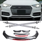 Universal For Audi Carbon Fiber+Red Front Bumper Lip Spoiler Splitter Body Kit +Strut Rods Bars Front Bumper Lip 5pcs Specification: -Type:Front Lip Chin Bumper Body Kits -Material:Polyurethane -Color: Carbon Fiber+Red -Weight:2168g -Placement on Vehicle:Front;;Lower -Fitment Type:Performance/Custom Feature: -Direct Fit. -Easy install and durable use. -Great quality and great Fitment. -Correct Connector No cutting or splicing. -Strict quality control standards to Build and test. -It'll give you a sporty look without making it too aggressive. -Light in weight and enduring, different optical line comes from different points of view. *Instruction Not Included, Professional Installation Is Highly Recommended.* Strut Rods ★ Length: The length can be adjustable from 8" to 11" (200-279mm) ★ Material: Stainless Steel ★ Quatity: 2 x Stainless Steel Bumper Lip Splitter Tie Rod Bars. ( Stainless steel has weldability, corrosion resistance and heat resistance.) ★ Position: This exquisite and compact lever is mainly fixed on the body components (front and rear surround, skirt, head and tail lip), and can also be installed in the car center console or interior trim panel ★ Require: Product will require drilling holes into the bumper and/or lip/diffuser to attach safely to the vehicle. Package Included: 1Set Front Lip Chin Bumper Body Kit (5PCS) 2 X Strut Splitter Rods 1 X Bag Of Mounting Hardware, Screws