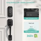 About this item: 【 10 in 1 Secure K e y p a d D o o r L o c k w i t h H a n d le Se t 】 SMONET wifi locks for front door provides Fingerprints/Free App/Anti-peep Password/Key Fobs/Keys/Auto Lock/Emergency Charge(USB-C)/Remote Control/Alexa Voice Control/Real Time Record.With all these options, you never have to worry about losing your keys and being locked out. Simply choose the best unlocking method that suits your needs 【 Easy WiFi Remote Man age 】This fingerprint door lock set offers wifi & Bluetooth connectivity, allowing you to easily unlock your door within seconds using smartphone from even thousands of miles away. It can be a great help when you're on vacation or away from home 【 Advanced & Smooth Finger print 】SMONET front door lock set can recognize your thumbprint in just 0.5 seconds, and unlock your door in 1 second, faster than fumbling for your keys.Keyless entry door lock with handle can be added 100+ IC cards and share access with friends or guest. 【 Free and Smarter Tuya AP P 】 Get instant notifications when kids come home from school and check real time electric operation records.Simple Tuya APP make managing your smart home a breeze.Enable voice control for this Alexa door lock.Free your hands when you are cooking.More compatible with your smart home. 【 Designed for Rental & Ai r b n b 】Customized one time,permanent, all kinds of codes for for your short term rental guest.By authorizing users, family members can also manage the smart deadbolt lock set through their individual app accounts.Ideal for airbnb, rental,vacation home,beach house. 【 E n hance Home Sec urity 】 The self-locking feature ensures your home is s ecure, even when you're in a rush. You can personalize your automatic lock time, and one-touch locking makes everyday operation a breeze. the door locks with keypad also provides anti-peep codes, where you can input numbers before or after the correct code to prevent others from peeping. 【 Easy Installati o n & Quality A ssur anc e 】With high quality and simple structure,long battery life, the digital door lock with keypad set can be quickly installed with a portable screwdriver in a short time.No extra hole is needed.No expensive locksmith is needed.The SMONET smart locks for front door set offers 30 day free return policy,one year warranty and lifetime customer service. Special Features : ①Fingerprint / Fob / Codes/ APP / Key / Alexa Remote Unlock ②Ideal for Rental & Airbnb & Vacation House ③Easy DIY Installation ④Long Battery Life ⑤Weather Resistant ⑥Waterproof ⑦Auto-Lock ⑧One Touch Unlock ⑨Real Time Record Specifications : Brand: SMONET Model: M6 Color: Black or Silver Material: Alloy Shape: Rectangular Style: Modern Ways to Unlock: Fingerprint / Keypad Passcode / Key Fobs / Physical Keys / Phone APP / Remote Control & Alexa Voice Control (WiFi Gateway Needed, INCLUDED) Phone APP: TT Lock or Next Lock (Totally FREE) Lock Type: Biometric, Deadbolt, Keypad Finish Type: Painted Control Method: App, Remote, Touch, Voice Connectivity Protocol: Bluetooth, Wi-Fi, Touch Power Supply: 4x AA Battery (NOT Included) Product Dimensions: 7.68 x 3.15 x 14.17 inches Item Weight: 4 pounds What's in the box : 1x Front Door Lock Keypad 1x Rear Door Lock Panel 1x Front Door Handle 1x Rear Lever Handle 1x WiFi Gateway (WiFi Bridge / Hub) 2x Key Fob (IC Card) 2x Mechanical Keys 2x Latch 1x Mounting Plate 1x Strike Box 1x Strike Plate 1x Drilling Template 1x Installation Screws Pack 1x User Manual 10 in 1 Secure Keyless Lock Set offer Free App/Passcode/Key Fobs/Keys/Auto Lock/E-Key/Remote Control/Alexa Voice Control/Real Time Record . 0.3S Fingerprint Unloc k Gain access in 0.3s with just a fingerprint. A great help when you can’t find (or forget) your keys Alexa Voice Co ntrol More compatible with smart home devices like Alexa & Google Assistant. Smart APP Remote Unloc k Smart & Easy APP suitable for everyone. Offers full control over your home security. 240+ Anti-Peep Passcodes Customized Auto Lock Remote WiF i Control Get access in 1s with just a touch. A huge help when you can’t find (or forget) your keys Widely C ompatibility Waterproof & Weather Resistant - Safeguard your home as always. One Time Co de Set this code for one-time entry, the code will invalid once has been used. Easy to Inst all Only use a screwdriver to install, it takes you only 15 - 30 minutes (Installation Video is on the bottom) Home Security - Check All Records in Real Time Check all records in real-time, always keeping you safe. Manage passwords with 1 click Family Friendly - Get real time notices Get real-time notices from digital door lock with keypad set when kids back to home unlock the door. Check the lock operation record clearly on your phone. Commercial Use - Perfect for Rental & Airbnb Customize your own access codes for your guests. Secure your home with anti-peep codes Property management - One APP to manage all properties Grant admin users to share the management of Tuya smart lock set. Add multiple locks and manage locks on the same APP Stable Connection - Long battery life with type C backup Long battery life last up to 10 months,Type C backup for emergency use. With low battery alert, always know when to replace your battery SMONET makes your everyday life easier, with higher quality standards, more lock details, and a better understanding of what family security requires . For Home For Lake House For Vacation Rental For Garage Door Related Videos (Press the "Play" to watch) 1. How to install the smart lock 2. How to pair with the phone app 3. How to pair with the WiFi gateway