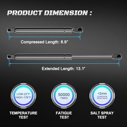 Front Hood Lift Supports Shock Strut Gas Spring 4142 for Ford Explorer 2002-2010 OEM 8097SS SG404025 819-6040 Front Hood Lift Supports Shock Strut Gas Spring 4142 for Ford Explorer 2002-2010 OEM 8097SS SG404025 819-6040 Compatible with Ford Explorer 2002-2010 (excluding Sport Trac 2002-2006). Strut dimensions: Extended length 13.10", compressed length 8.90". OEM part numbers include 4142, SG404025, 8097SS, WGS-123, 8196040, 13956, 6083RK, 7921SI. High strength leak-proof piston seal and corrosion-resistant rod finish for durability. Includes 2 gas shocks with sturdy packaging; easy installation without special tools. Check vehicle compatibility before purchase; customer support available for inquiries.