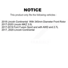 More details from seller Transit Auto Front Hub Bearing Assembly Coated Drilled Slotted Disc Brake Rotors And Semi-Metallic Pads Kit KBB-129733 COMPATIBILITY This product only fits the following vehicles : 2017-2019 Ford Fusion Sport and with 2.7L 2017 2020 Lincoln Continental 2018 Lincoln Continental With 345mm Diameter Front Rotor 2017-2020 Lincoln MKZ 3.0L Your vehicle is not listed? Search in our store by entering your vehicle year make model and the position you are searching for in the form below. PRODUCT DESCRIPTION Included (5 pcs) 2 x Front Wheel Bearing and Hub Assembly (Both Sides) 2 x Front Coated Slotted Drilled Disc Brake Rotor (Both Sides) 1 x Front Semi-Metallic Disc Brake Pad Set (Hardware Included) Kugel Kugel Bearings use premium quality Chevron Grade 2 molybdenum grease Exclusive multi-lip seals are made with Nitrile Rubber (NBR) which can successfully function at temperatures of-40°C while resisting contaminants from fluids and debris Manufactured with CNC tooling, automated grinding and assembly lines for increased consistency Inner rings are made of AISI 52100 alloy (high carbon) steel, low-alloy chromium steel, which meets ASTM International quality standards Core made of high tensile, heat-treatable AISI 1065 high-carbon steel Assembly is precision processed and pre-coated with anti-corrosion lubricant, it not only makes lubricating the bearings easy, but also helps prevent corrosion of the hub Part Reference Numbers : WH513394 WH513443 MB40329 513443 BR931101 HA590611 TRB-513394 513394 Interchanges: N/A, WH513394, WH513443, MB40329, 513443, BR931101, HA590611, TRB-513394, 513394 DS-One Make sure to buy two (2)! (One for left side and one for right side) Engineered with Carbon-Enhanced PowerCast™ (G11H18/G3000) iron castings to achieve an unmatched power and braking performance (strength, grip, stability) Exclusive DS1™ Bi-Directional Drilled and Slotted for universal left or right installation Precision Cross-Drilled and Slotted for maximum cooling and heat dissipation Electrophoretic PowerShield™ provides 360° of anti-corrosion protection on 100% of the non-braking rotor surface 100% Precision Spin and Mill-Balanced for smoother stopping and zero vibration at any speed Cross-Hatched smooth surface to improve the pad's ability to grip the rotor surface, especially during initial brake applications or in wet conditions Tested for maximum tolerance to voluminous amount of constant thermal cycles Packed in a Vapor Corrosion Inhibitor (VCI) bag, it eliminates the need for an oil coating and reduces prep time Best matched with CMX, TEC, SIM or Positive Plus brake pads Part Reference Numbers : AC85235 AR85235 CR85235 PR85235 2164570 YH539672C YH539672 120.61120 121.61120 BR901424 54193 2488821801 488821801 7488821801 901424 940903 640006 681995 AFO1037 BFO1037 BD180689E BD180689 New in Box, Ready to Install, No Modifications Required Interchanges: AC85235, AR85235, CR85235, PR85235, 2164570, YH539672C, YH539672, 120.61120, 121.61120, BR901424, 54193, 2488821801, 488821801, 7488821801, 901424, 940903, 640006, 681995, AFO1037, BFO1037, BD180689E, BD180689 SIM SIM Exclusive low-resin Semi-Metallic formula eliminates brake fade and glazing for optimal braking power High density friction material to ensure a long pad life and excellent stopping power Premium shims for provides increased strength and insulation against noise Precise laser-cut channel cut provides a superior thermal stability and prevent overheating Improved new technology provides stable friction consistency, ensuring better braking performance Chamfered like OE pads for maximum pad retention and to prevent edge shifting Scorched for almost no break-in process required and raised initial cold effectiveness Premium Stainless-Steel hardware included (when required by the application) Post-cured, high temperature, thermo-processed pads means no break-in required Manufactured in ISO-Certified Installations and without asbestos Part Reference Numbers : 9053 SG9053AX SS9053AX AD9053A D1818A 1818A Interchanges: 9053, SG9053AX, SS9053AX, AD9053A, D1818A, 1818A FITMENTS To obtain this guarantee Make sure that you vehicle is found in the eBay Motor compability list above or in our compatibility summary. If you wish further validation, simply copy and paste your vehicle information along with your VIN into the order note. We will double-check it before sending your order. We assume all responsibility for the fitment information of our products. SAFETY Additional information We follow the guidelines set out by Friction Material Standards Institute (FMSI) to ensure the safety of our customers. This means that if the FMSI says a pad number should have no slot or should not be chamfered based on it's size, we will follow their guidelines. Our customer's safety is our highest priority. All our products follow the OE specifications: there is no modification needed for installation. SHIPPING Please note that we do not deliver to: Alaska, Puerto Rico, Hawaii, Guam, US Virgin Islands, neither P.O. Boxes, APO, FPO *3 PM Eastern time. Monday - Friday, order received the weekend will be shipped on Monday FAQ Do you need any additional information about my vehicle? If you see your vehicle in the fitment list, you don't need to send us additional information, the parts will fit your vehicle, we guarantee it. If you are not sure and would like to double check, send us a message with your vehicle information or VIN and our vehicle specialists will assist you. Will I get a tracking number? Absolutely, all our shipments come with a tracking number that will be uploaded to the order details once it ships. How to claim Warranty / Exchange / Return? For any claim, contact us through eBay and one of our customer service agents will be happy to assist you and give you a RMA (Return Merchandise Authorization) number. Everything that is returned to our warehouse needs a RMA code, so make sure to contact us before sending anything back