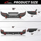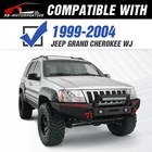 Please pay attention to the product options you select: If you choose Front & Rear Bumper,You can get 1 × Front Bumper, 1 × Rear Bumper and Mounting Hardware; If you choose Only Front Bumper,You can get 1 × Front Bumper and Mounting Hardware; If you choose Only Rear Bumper,You can get 1 × Rear Bumper and Mounting Hardware; Suitable Models : Compatible with 1999-2004 Jeep 2nd Gen Grand Cherokee WJ Package Includes : ① Front & Rear Bumper option : 1 x Front Bumper, 1 x Rear Bumper, 1 x Winch Plate, 5 x LED Lights, 4 x D-rings, Paintable Armor, 2 x manual, screw fittings ② Fro nt Bumper option : 1 x Front Bumper, 1 x Winch Plate, 2 x D-rings, 3 x LED Lights, 1 x manual, screw fittings ③ Rear Bumper option : 1 x Rear Bumper, 1 x Hitch Receiver, 2 x D-rings, 2 x LED Lights, Paintable Armor, 1 x manual, screw fittings Product Information : Package Dimensions : 48.03"D x 25.2"W x 21.65"H Installation mode: Bolt-On With Sensor Holes: No Steel thickness: 3mm Placement on Vehicle: Front/Rear Item Weight: Front Bumper: 98 Pounds; Rear Bumper: 94 Pounds Material: Carbon Steel Color: Black (hand measurements may have an error of 2-3 mm/0.078-0.118 in) Feature : Front bumper : ① The front bumper features a sturdy winch plate capable of supporting up to 12,000 pounds, along with two D-rings, each with a 9,500-pound (4.75-ton) rating. It's equipped with an 120W LED spotlight and two 18W LED spotlights for strong illumination. You can personalize it to match your vehicle thanks to its customizable, paintable design; ② Crafted from sturdy high-strength steel, our front bumper boasts exceptional durability. Its two-stage textured black powder coating not only elevates its visual appeal but also offers enhanced protection; ③ Our Front Bumper features a convenient bolt-on design, making installation easy without the need for vehicle modifications ; ④ Durability, Waterproof, Rust-proof; Rear Bumper : ① To reinforce its durability, our rear bumper features two sturdy D-ring shackle mounts, meticulously welded on both the inside and outside. It comes complete with 4.75-ton D-rings (rated at 9,500 lbs), an adaptable paintable design for customization, two 18W LED lights, and a standard 2" receiver hitch; ② Crafted from robust high-strength steel, our rear bumper exhibits remarkable durability. Its black powder coating not only enhances its aesthetics and protection but also provides rust resistance, ensuring both enduring performance and appearance, even in case of coating damage; ③ Our Rear Bumper is designed with a straightforward bolt-on system for effortless installation without the need for vehicle modifications. While modifications are not obligatory, we recommend professional installation to ensure safety; ④ Durability, Waterproof, Rust-proof; Warranty Period :2 year