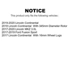 Front Rear Brake Pads & Rotors Kit for 2017-2019 Continental Fusion MKZ Part # K8F-102553 Condition: New KEY FEATURES: Premium Coated Rotors G3000 Heat-Flowed Cast Steel High Density Low-Resin Semi-Metallic Pads Manufactured using Positive Mold Technology IMPORTANT FITMENT NOTES (MUST READ): With 16mm Wheel Lugs With 345mm Diameter Rotor INCLUDES (MUST READ): 2x Front Disc Brake Rotor (Both Side) + 1x Front Semi-Metallic Brake Pad Set + 2x Rear Disc Brake Rotor (Both Side) + 1x Rear Semi-Metallic Brake Pad Set PRODUCT DETAILS & FITMENT INTERCHANGE DATA SHIPPING & WARRANTY ABOUT We have selectively combined both Top Quality''s premium rotors and Positive Plus'' semi-metallic brake pads to create this Front and Rear brake kit that will restore your Continental, Fusion or MKZ stopping power. The rotors use a G3000 heat-flow cast which provides consistent wear and quiet operation. Paired with high density low-resin semi-metallic pads to ensure long life, reduced noise-causing vibrations, and optimizes braking power. FITMENT SUMMARY Years Make Model 2017 - 2019 Ford Fusion 2017 - 2019 Lincoln Continental 2017 - 2019 Lincoln MKZ DETAILED VEHICLE FITMENT Year Make Model Drive Cyl Liter Body 2019 Ford Fusion AWD 6 2.7 Sedan 2018 Ford Fusion AWD 6 2.7 Sedan 2017 Ford Fusion AWD 6 2.7 Sedan 2019 Lincoln Continental AWD 6 3.0 Sedan 2019 Lincoln Continental FWD 6 3.7 Sedan 2019 Lincoln Continental AWD 6 2.7 Sedan 2019 Lincoln Continental FWD 6 3.0 Sedan 2019 Lincoln Continental FWD 6 2.7 Sedan 2019 Lincoln Continental AWD 6 3.7 Sedan 2018 Lincoln Continental AWD 6 3.0 Sedan Notes: With 345mm Diameter Rotor 2018 Lincoln Continental FWD 6 3.0 Sedan Notes: With 345mm Diameter Rotor 2018 Lincoln Continental AWD 6 2.7 Sedan Notes: With 345mm Diameter Rotor 2018 Lincoln Continental FWD 6 2.7 Sedan Notes: With 345mm Diameter Rotor 2018 Lincoln Continental FWD 6 3.7 Sedan Notes: With 345mm Diameter Rotor 2018 Lincoln Continental AWD 6 3.7 Sedan Notes: With 345mm Diameter Rotor 2017 Lincoln Continental AWD 6 2.7 Sedan Notes: With 16mm Wheel Lugs 2017 Lincoln Continental FWD 6 2.7 Sedan Notes: With 16mm Wheel Lugs 2017 Lincoln Continental AWD 6 3.0 Sedan Notes: With 16mm Wheel Lugs 2017 Lincoln Continental FWD 6 3.0 Sedan Notes: With 16mm Wheel Lugs 2017 Lincoln Continental FWD 6 3.7 Sedan Notes: With 16mm Wheel Lugs 2017 Lincoln Continental AWD 6 3.7 Sedan Notes: With 16mm Wheel Lugs 2019 Lincoln MKZ FWD 6 3.0 Sedan 2019 Lincoln MKZ AWD 6 3.0 Sedan 2018 Lincoln MKZ AWD 6 3.0 Sedan 2018 Lincoln MKZ FWD 6 3.0 Sedan 2017 Lincoln MKZ AWD 6 3.0 Sedan 2017 Lincoln MKZ FWD 6 3.0 Sedan INTERCHANGE Part Number Competitor Brand Competitor Part Number K8F-102553 Transit AR85235 K8F-102553 Transit RAY K8F-102553 Transit 681995 K8F-102553 Transit YH539672C K8F-102553 Transit YH539672 K8F-102553 Transit 120.61120 K8F-102553 Transit 121.61120 K8F-102553 Transit BR901424 K8F-102553 Transit 54193 K8F-102553 Transit 488821801 K8F-102553 Transit 7488821801 K8F-102553 Transit 2488821801 K8F-102553 Transit 901424 K8F-102553 Transit 940903 K8F-102553 Transit 640006 K8F-102553 Transit 681995 K8F-102553 Transit AFO1037 K8F-102553 Transit BD180689 K8F-102553 Transit ASR-54193 K8F-102553 Transit 9053 K8F-102553 Transit SS9053AX K8F-102553 Transit AD9053A K8F-102553 Transit D1818A K8F-102553 Transit 1818A K8F-102553 Transit xPPF-D1818A K8F-102553 Transit AR85745 K8F-102553 Transit RAY K8F-102553 Transit 682151 K8F-102553 Transit YH540113C K8F-102553 Transit YH540113 K8F-102553 Transit 120.61113 K8F-102553 Transit 121.61113 K8F-102553 Transit BR901426 K8F-102553 Transit 54194 K8F-102553 Transit 488812107 K8F-102553 Transit 7488812107 K8F-102553 Transit 2488812107 K8F-102553 Transit 901426 K8F-102553 Transit 940891 K8F-102553 Transit 640007 K8F-102553 Transit 682151 K8F-102553 Transit AFO1036 K8F-102553 Transit TQ8157 K8F-102553 Transit BD180699 K8F-102553 Transit ASR-54194 K8F-102553 Transit 8893 K8F-102553 Transit PF8893X K8F-102553 Transit SS8893X K8F-102553 Transit AD8893 K8F-102553 Transit D1665 K8F-102553 Transit 1665 K8F-102553 Transit xPPF-D1665 Order Processing: Standard business day order processing is same day (Monday-Friday) when placed before 2:00pm EST. These days exclude weekends and holidays. Orders placed after 2:00 PM EST. ship the following business day with an exception for Friday which will ship the following Monday. Shipping & Delivery: APSource offers free shipping on thousands of products. Our preferred shipping method is UPS Ground, however smaller items may be shipped USPS First Class or Priority. Delivery times will vary, and products may ship separately from different warehouses located across the United States. Depending on warehouse locations and shipping destination, delivery times can range from 2 to 5 business days. Note: Free shipping is eligible only to U.S. delivery addresses within the 48 states. We do not ship to P.O. Boxes and APO/FPO addresses. Expedited shipping options are available for select items. Some orders may require signature confirmation at the time of delivery. Warranty: APSource 1 year warranty covers against defects in material or workmanship from the date of purchase. A dated sales receipt must be included to show your product was purchased within the warranty period. We handle all manufacturer warranty claims on your behalf. Any product found to be defective within 30 days of purchase is eligible for a refund or replacement, however any product found to be defective after 30 days but before the warranty period has expired are only eligible for a replacement only. Replacement product does not renew the warranty period. When a product is found to be defective, APSource will cover the costs of shipping of the replacement part to the original purchaser. Warranty and UPS related claims may require authentication, but not limited to pictures, video, or shipment back to the manufacturer. Note: Do not dispose of defective parts until instructed. If the defective part is requested to be ret