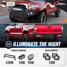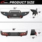 Front /Rear Bumper W/ LED Lights & D-rings For 2005-2015 Toyota Tacoma 2nd Gen Please pay attention to the product options you select: If you choose Front & Rear Bumper,You can get 1 × Front Bumper, 1 × Rear Bumper and Mounting Hardware; If you choose Only Front Bumper,You can get 1 × Front Bumper and Mounting Hardware; If you choose Only Rear Bumper,You can get 1 × Rear Bumper and Mounting Hardware; Suitable Models : Compatible with 2005-2015 Toyota Tacoma 2nd Gen Package Includes : ① Front & Rear Bumper option : 1 x Front Bumper, 1 x Rear Bumper, 9 x LED Lights, 1 x License Plate Bracket , 1 x Winch Plate , Paintable Armor , 4 x D-rings, Skid Plate, 2 x manual, screw fittings ② Fro nt Bumper option : 1 x Front Bumper, 1 x License Plate Bracket, 1 x Winch Plate , 5 x LED Lights, 2 x D-rings, Skid Plate, 1 x manual, screw fittings ③ Rear Bumper option : 1 x Rear Bumper, Paintable Armor, 2 x D-rings, 4 x LED Lights, 1 x manual, screw fittings Product Information : Package Dimensions : 70.08"D x 24.8"W x 24.8"H Installation mode: Bolt-On With Sensor Holes: Yes ( Only Front Bumper Have, and not fit for original sensor ) Steel thickness: 3mm Placement on Vehicle: Front/Rear Item Weight: Front Bumper: 121 Pounds; Rear Bumper: 67 Pounds Material: Carbon Steel Color: Black (hand measurements may have an error of 2-3 mm/0.078-0.118 in) Feature : Front bumper : ① A durable skid plate for underbody protection, a winch plate capable of supporting up to 12,000 pounds, two 4.75-ton D-rings, a license plate bracket, sensor holes, a powerful 120W LED light bar, and four brilliant 18W LED spotlights ; ② Our front bumper is made from strong high-strength steel with a durable textured black powder coating. This combination ensures both toughness and style while offering protection. It's also resistant to rust, ensuring long-lasting performance and appearance, even if the powder coating gets scratched; ③ Our front bumper has a user-friendly bolt-on design for easy, modification-free installation; ④Powder Coated, Durability, Waterproof; Rear Bumper : ① Our rear bumper comes equipped with a stainless steel skid prevention plate, two 4.75-ton D-rings, and four powerful 18W LED spotlights. It's tailored with pre-drilled holes for License Plate lights and the license plate; ② Our rear bumper, made from strong high-strength steel with a textured black powder coating, delivers both durability and style; ③ Our rear bumper has a user-friendly bolt-on design for easy, modification-free installation; ④ Durability, Waterproof, Rust-proof; Warranty Period :2 year Standard Shipping (FedEx Ground or FedEx Home Delivery) Will usually ship within 3 business days of receiving cleared payment Please pay attention to the product options you select: If you choose Front & Rear Bumper,You can get 1 × Front Bumper, 1 × Rear Bumper and Mounting Hardware; If you choose Only Front Bumper,You can get 1 × Front Bumper and Mounting Hardware; If you choose Only Rear Bumper,You can get 1 × Rear Bumper and Mounting Hardware; Suitable Models : Compatible with 2005-2015 Toyota Tacoma 2nd Gen Package Includes : ① Front & Rear Bumper option : 1 x Front Bumper, 1 x Rear Bumper, 9 x LED Lights, 1 x License Plate Bracket , 1 x Winch Plate , Paintable Armor , 4 x D-rings, Skid Plate, 2 x manual, screw fittings ② Fro nt Bumper option : 1 x Front Bumper, 1 x License Plate Bracket, 1 x Winch Plate , 5 x LED Lights, 2 x D-rings, Skid Plate, 1 x manual, screw fittings ③ Rear Bumper option : 1 x Rear Bumper, Paintable Armor, 2 x D-rings, 4 x LED Lights, 1 x manual, screw fittings Product Information : Package Dimensions : 70.08"D x 24.8"W x 24.8"H Installation mode: Bolt-On With Sensor Holes: Yes ( Only Front Bumper Have, and not fit for original sensor ) Steel thickness: 3mm Placement on Vehicle: Front/Rear Item Weight: Front Bumper: 121 Pounds; Rear Bumper: 67 Pounds Material: Carbon Steel Color: Black (hand measurements may have an error of 2-3 mm/0.078-0.118 in) Feature : Front bumper : ① A durable skid plate for underbody protection, a winch plate capable of supporting up to 12,000 pounds, two 4.75-ton D-rings, a license plate bracket, sensor holes, a powerful 120W LED light bar, and four brilliant 18W LED spotlights ; ② Our front bumper is made from strong high-strength steel with a durable textured black powder coating. This combination ensures both toughness and style while offering protection. It's also resistant to rust, ensuring long-lasting performance and appearance, even if the powder coating gets scratched; ③ Our front bumper has a user-friendly bolt-on design for easy, modification-free installation; ④Powder Coated, Durability, Waterproof; Rear Bumper : ① Our rear bumper comes equipped with a stainless steel skid prevention plate, two 4.75-ton D-rings, and four powerful 18W LED spotlights. It's tailored with pre-drilled holes for License Plate lights and the license plate; ② Our rear bumper, made from strong high-strength steel with a textured black powder coating, delivers both durability and style; ③ Our rear bumper has a user-friendly bolt-on design for easy, modification-free installation; ④ Durability, Waterproof, Rust-proof; Warranty Period :2 year