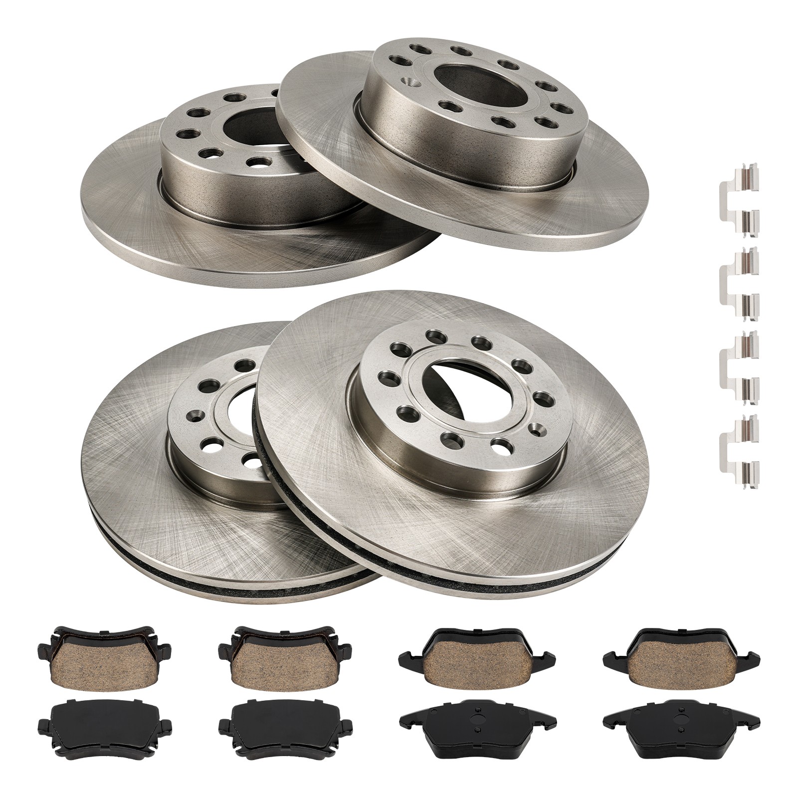 Features & Details Items Included: 2x Front brake rotors - 34303,4x Front brake pads - D1107A,2x Rear brake rotors - 34294,4x Rear brake pads - D1108 Overall Height: front 49.7mm,rear 48.4mm Discard Thickness: front 22mm,rear 10mm Rotor Outside Diameter: front 11.34 inch (287.8mm),rear 10.24 inch (259.8mm) Material: Steel, G3000 Rotor Style: Solid Placement on Vehicle: Front and Rear Center Hole Diameter: front 65mm,rear 65mm Brand: KAC Formula: No copper Type: Brake Kit Mounting Bolt Hole Circle Diameter: front 112mm,rear 112mm Manufacturer Warranty: 5 Years OE/OEM Part Number: P-1107A,P-1108,R-34294,R-34303 Number in Pack: 12 Features: Noiseless,Durable Nominal Thickness: front 24.9mm,rear 11.9mm Stud Hole Quantity: front 5+4+1,rear 5+4+1 Key Benefits - Provides reliable stopping power with durable materials, ensuring safe driving conditions. - Designed for noiseless performance, enhancing your driving experience. - Comes with a complete kit including front and rear rotors and pads, making installation straightforward. - Backed by a 5-year manufacturer warranty for added peace of mind. - Engineered for compatibility with specific Volkswagen models for precise fitment. Compatibility For Volkswagen: Volkswagen Jetta 2005 L5 2.5L (SubModel:2.5) Volkswagen Jetta 2005 L4 1.9T (SubModel:TDI) Volkswagen Jetta 2006 L4 1.9T Volkswagen Jetta 2006-2009 L5 2.5L Volkswagen Jetta 2010 L5 2.5L (SubModel:S; SE; SEL) Volkswagen Jetta 2009-2010 L4 2.0T (BodyType:Sedan, SubModel:TDI) Volkswagen Golf 2010 L4 2.0T What's Included 2x Front brake rotors - 34303 ,4x Front brake pads - D1107A ,2x Rear brake rotors - 34294 ,4x Rear brake pads - D1108 Important Notes - Ensure that the vehicle is compatible by referencing the OE numbers: P-1107A, P-1108, R-34294, R-34303. - Always follow the manufacturer’s instructions for installation to avoid safety hazards. - Check brake fluid levels and bleed the brakes after installation if necessary for optimal performance. - Inspect all components for damage before installation to ensure proper function. Slotted Diamond Slot Technology rotors remove brake and road debris and prevent pad glazing, extending the life of the pad and the rotor. Cross-drilled rotors are also chamfered, which reduces the potential for cracking, for safe, smooth braking. Zinc Coated for Corrosion Protection All of KAC series brake rotors, come with a special zinc plating designed to protect from corrosion. This leads to better appearance, longer life, and overall improved maintenance and replacement costs. Drilled Rotors come with drilled holes help keep rotors temperatures down during extreme braking performance. Crossed Drilled rotors reduce the heat that builds on the rotor by up to 105° F. Long Service Life The ventilation groove design on the brake disc allows the airflow to shuttle in the cavity, which is more conducive to the cooling of the brake system and the discharge of excess moisture, so that the brake disc has a long service life. Chamfered & Slotted The chamfered design can greatly reduce the noise, improve the fit, and enhance the braking performance. The groove design can effectively enhance heat dissipation, reduce resonance and remove dust. Heat-Resistant Ceramic brake pads are resistant to high temperatures and work perfectly with drilled/slotted discs, making them very safe and reliable during sustained hard braking. Payment Shipping 1) we accepts all major credit cards via PayPal: MasterCard, Visa, American Express and Discover. 2) We will only ship to the confirmed PayPal shipping address given with the payment. Please make sure your PayPal and eBay address is correct. If not, please correct it before payment. Thank you. 3) If you want to ship to another address, please change your PayPal shipping address before you make payment. 4) To avoid initiating an unpaid item claim, please pay within 7 days. 5) Custom duties, taxes, or charges are not included in the cost you pay to us. We only ship this item to United States ! 1. We ship to your eBay address. Each package will be shipped by UPS or Fedex with tracking number. 2. Ship within 1 business day once payment completed. Orders placed on weekend will be shipped within 3 days. 4. Seriously promise: Refund or resend will be offered if item still not arrive in 7-10 business days. Just send us an email ,we will give you a satisfied solution as soon as possible. Return Policy Contact Us If you send us an e-mail, it will be answered within 48 hours during our working hours. Please feel free to contact us if you have any questions: Dear my friend,we appreciate your support.And our goal is service you well and give you a pleasant shopping time in our store. ✅Dear customer, when you want to return or exchange goods (Please contact us first, instead of directly initiating a dispute) 1: Contact the seller first 2: Send pictures: outer packaging&scanned labels&item itself&with complete accessories, etc necessary condition Rule A: The original packaging of the item is in an unused state. Rule B: The outer packaging must not have any damage. 3: Obtain return label 4: Delivered Projects - Payment Repayment ✅A 15% restocking and shelving fee will be charged for returns or exchanges that are not caused by the seller and are in good condition. Exchange will not charge restocking fees or shipping fees due to transportation errors ✅Priority In case of the following reasons, the freight will be borne by the buyer 1: Unexpected order 2: Find a better price 3: Change your mind 4: Buy more items/make mistakes/misread model information ✅Please note Missing accessories/quality issues/transportation damage, etc Please contact us first to obtain a good solution, rather than directly opening a return dispute. Thank you very much for your understanding. I hope we have a pleasant cooperation! Contact us if you have any question, Give us a chance to serve you, negative feedback could not solve anything, communication Please! ❎ (NO) Three stars 