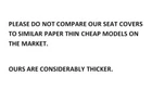 A LOVELY SET OF QUALITY RED-BLACK DOUBLE LAYER BREATHABLE FABRIC FRONT SEAT COVERS NEW. SET INCLUDE 2 SINGLE FRONT SEAT COVERS & 2 HEADREST COVERS Produced from high quality heavy duty soft to feel peach effect stretch two ply fabric which gives the the cover a soft fit as well comes with a thermal backing for added comfort. The seat covers are tailored to allow full use of seat belts, headrest and driver armrest. Machine washable at 40 degrees GREAT FOR LONG DISTANCE DRIVERS! PLEASE DO NOT COMPARE OUR SEAT COVERS TO SIMILAR PAPER THIN CHEAP MODELS ON THE MARKET. OURS ARE CONSIDERABLY THICKER. Our covers do not move or slide as we use locking clips to secure the covers ,depending on the model. You will not sweat or slip/slide on these seat covers unlike the nylon seat covers available elsewhere WHAT ARE THEY FOR? These covers are intended to protect your original upholstery from dirt and wear. Even regular cleaning cannot stop everyday wear and tear. By investing in these high quality protectors you will give your vehicle great long term protection and increased resale value. Custom tailored seat covers are also an affordable way of renewing old / worn upholstery for a fraction of the price of replacement. We welcome any questions you may have on this item. Thanks for your interest!! ANY QUESTIONS PLEASE EMAIL US. GREAT GIFT! Produced from high quality heavy duty soft to feel peach effect stretch two ply fabric which gives the the cover a soft fit as well comes with a thermal backing for added comfort. The seat covers are tailored to allow full use of seat belts, headrest and driver armrest. Our covers do not move or slide as we use locking clips to secure the covers ,depending on the model. You will not sweat or slip/slide on these seat covers unlike the nylon seat covers available elsewhere These covers are intended to protect your original upholstery from dirt and wear. Even regular cleaning cannot stop everyday wear and tear. By investing in these high quality protectors you will give your vehicle great long term protection and increased resale value. Custom tailored seat covers are also an affordable way o