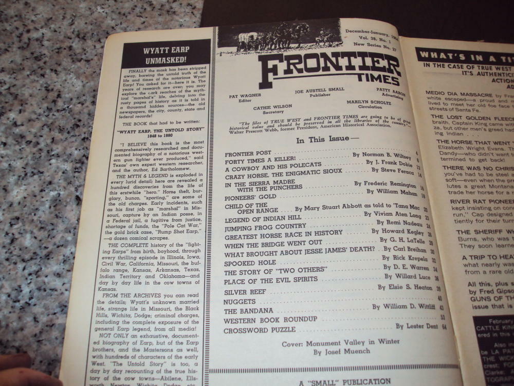 JJJ Collectibles Long-Lost Treasures from Swan's Magazine Mart (1930-2007) Magazines Music Memorabilia Comics Sign up for Newsletter One of the Long-Lost Treasures from Swan's Magazine Mart Vintage Issue Of Frontier Times Magazine January 1964 Average Condition: Exterior shows light to moderate wear, interior is very clean. All Magazines come boarded and bagged Welcome to our selection of comic books, vintage magazines, music memorabilia, posters, records, toys, books, pulps and more. We have a total inventory of 5-10 million items. We have thousands of positive feedbacks from happy customers because we sell good products, we are honest, and we stand behind our policies. We've done our best to describe and display each item as accurately as possible, but we do welcome any questions you may have. If you like our selection, our prices, and our service, you might want to consider signing up on our store's mailing list. We will not give out your contact information to 3rd parties. Please add us to your list of favorite sellers and tell your friends. We accept PAYPAL, VISA, MASTERCARD, DISCOVER, and AMERICAN EXPRESS. Prompt payment is appreciated and required within seven days of purchase. We ship WORLDWIDE. We do combine shipping. If you are bidding on multiple auctions please let us know. Our international shipping costs are our ACTUAL costs for postage & materials. We endeavor to ship all items within 24 hours of receiving payment or by the next business day. Please email to let us know if your item does not arrive in a timely fashion. NOTE: Some International packages have to go First Class. First Class International cannot be tracked or insured. If you have questions or comments for us, please use the 'Ask seller a question' link above to contact us. If there is a problem with your purchase, for any reason, please contact us so that we can resolve it. We do have a return policy if you aren't happy. Just contact us by email or phone within three days of purchase, explain your problem, and if we can't make it right we will accept the return of the item in saleable condition. On receipt of the item, you will get your money back. This listing created with GLETech Multiple Selling Channel tools.