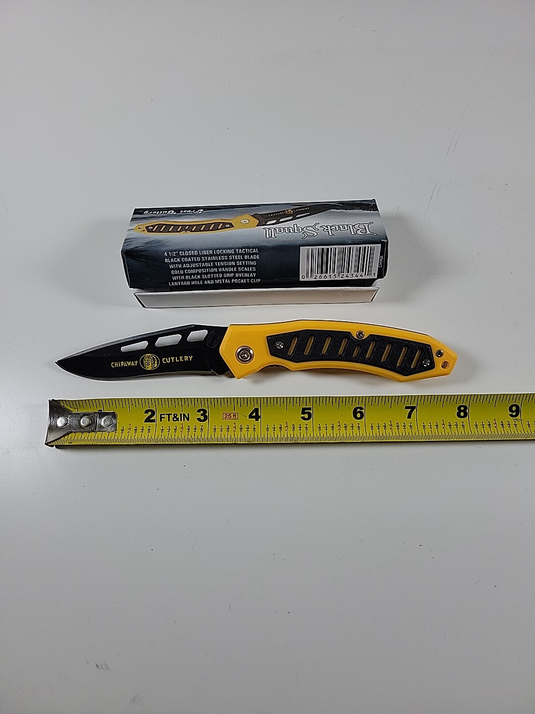 HomeFrost Cutlery Black Squall Yellow Folding Pocket Knife Brand New