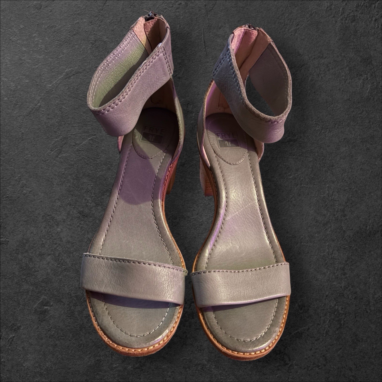 Beautiful pair of Frye Brielle sandals in the rare Sage leather colorway. Features a stacked block heel, wide ankle strap, and easy back-zip closure. Soft, premium leather with Frye’s signature quality. Details: • Brand: Frye • Style: Brielle • Color: Sage (light grey/green neutral) • Genuine leather upper + leather footbed • Wooden stacked block heel • Back zip closure • Open toe • Condition: Gently worn; light wear on soles, leather clean and soft • Size: 9 Timeless, comfortable, and perfect for spring/summer outfits.