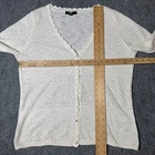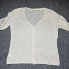 Frye Women's Medium 100% Cotton Cream Pointelle Button Down Lightweight Cardigan Top is in excellent condition as shown in pictures, size is also shown in pictures. Feel free to ask any questions about this item, all of our items come from a smoke free environment.