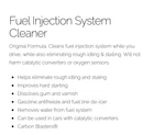 Fuel Injection System Cleaner Original Formula. Cleans fuel injection system while you drive, while also eliminating rough idling & stalling. Will not harm catalytic converters or oxygen sensors. Helps eliminate rough idling and staling Improves hard starting Dissolves gum and varnish Gasoline antifreeze and fuel line de-icer Removes water from fuel system Can be used in cars with catalytic converters Carbon Blasters