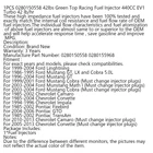 SAFE & SECURE SHOPPING 100% SATISFACTION GUARANTEED FAST SHIPPING Store Categories Store Categories Other eBay Motors Honda Toyota Ford Chevrolet Audi Mercedes-Benz Dodge Jeep You may also like Front Fog Light Cover 8W0807682 F fit AUDI A4 B9 S-LINE 16-18 Bumper Grille USA 77.69 USD Free shipping 4F27E FN4AEL Transmission Super Master Rebuild Kit 99-UPFor Ford Focus Mazda 257.65 USD Free shipping 2PCS Rear Electric Tailgate Gas Strut 32296296 fit Volvo XC40 536 2019-2023 220.69 USD Free shipping Steering Wheel Angle Sensor 5135969AA For Dodge Charger Chrysler 300 2005-2010 73.69 USD Free shipping Left+Right Front Windshield Post Trim 51137128157 58 For Mini Cooper R50 R52 R53 71.68 USD Free shipping 1× Parking Brake Handbrake Actuator Module For Hyundai Santa Fe & Max Cruz 12-19 105.99 USD Free shipping Fuel Injectors Fits for GM LT1 LS1 LS6 Mustang SOHC DOHC V8 440cc EV1 0280150558 Product Description 1PCS 0280150558 42lbs Green Top Racing Fuel Injector 440CC EV1 Turbo 42 lb/hr These high impedance fuel injectors have been 100% tested and exactly match the internal coil resistance and fuel flow rate of OEM fuel injectors.The individual flow characteristics and fuel atomization of above fuel injectors are almost same to or superior to the OEM and will help accelerate response time , save gasoline and improve MPG. Description: Condition: Brand New Warranty: 3 Years Manufacture Part Number: 0280150558 0280155968 Fitment : For exact years and models, please check compatibilities. For 1999-2004 Ford Linghtning For 1986-1995 Ford Mustang GT, LX and Cobra 5.0L For 1996-2004 Ford Mustang GT For 1999/2001 Ford Mustang Cobra (Must change injector plugs) For 2003-2004 Ford Munstang Math I (Must change injector plugs) For 2003-2004 Ford Mustang Cobra (Must change injector plugs) For 1985-2002 Chevrolet Camaro For 1985-2004 Chevrolet Corvette For 1994-1996 Chevrolet Impala For 1985-2002 Pontiac Firebird For 2004-2006 Pontiac GTO For 1985-2002 Pontiac TransAm For 2010-2013 Chevrolet Camaro (Must change injector plugs) For 2005-2013 Chevrolet Corvette (Must change injector plugs) Package Includes: 1*Fuel Injectors Notes: Due to the difference between different monitors, the pictures may not reflect the actual color of the item. 8PCS 0280150558 42lbs Green Top Racing Fuel Injector 440CC EV1 Turbo 42 lb/hr These high impedance fuel injectors have been 100% tested and exactly match the internal coil resistance and fuel flow rate of OEM fuel injectors.The individual flow characteristics and fuel atomization of above fuel injectors are almost same to or superior to the OEM and will help accelerate response time , save gasoline and improve MPG. Description: Condition: Brand New Warranty: 3 Years Manufacture Part Number: 0280150558 0280155968 Fitment : For exact years and models, please check compatibilities. For 1999-2004 Ford Linghtning For 1986-1995 Ford Mustang GT, LX and Cobra 5.0L For 1996-2004 Ford Mustang GT For 1999/2001 Ford Mustang Cobra (Must change injector plugs) For 2003-2004 Ford Munstang Math I (Must change injector plugs) For 2003-2004 Ford Mustang Cobra (Must change injector plugs) For 1985-2002 Chevrolet Camaro For 1985-2004 Chevrolet Corvette For 1994-1996 Chevrolet Impala For 1985-2002 Pontiac Firebird For 2004-2006 Pontiac GTO For 1985-2002 Pontiac TransAm For 2010-2013 Chevrolet Camaro (Must change injector plugs) For 2005-2013 Chevrolet Corvette (Must change injector plugs) Package Includes: 8*Fuel Injectors Notes: Due to the difference between different monitors, the pictures may not reflect the actual color of the item. PAYMENT 1.We only accept PayPal. 2.PayPal is the only online payment method we accept. Please make sure you have a valid/confirmed PayPal account prior bidding. 3.Payment must be made within 3 days of the auction end time. Non-Paying bidders will be reported. 4.Our eBay account automatically open a dispute for a unpaid item, when we don't receive your payment after 4 days. SHIPPING United States Buyers Parcel will via USPS or UPS from us United States warehouse Shipping Time Usually ,Parcel will be delivered 2-7 working day include Handling time. Sometimes shiping time may has a little delay, such as Bad wether,Holidays Terms of Sale We stand behind everything that we sell and will do everything possible to assure you are satisfied. When you receive your purchase if you are not 100% satisfied, please sent me ebay message and we will do our best to make you happy. If you still want to return your purchase, simply ship the item(s) back to us and we will refund your original purchase price and the original shipping charge. Buyers are responsible for the postal cost of returning the items. We must be notified of the intent to return your item within 30 days of receiving the item. Items returned must be in the same condition that they were received. How to return 1,Please ask us for return address . 2,Shipping back the package . The RMA#(Return Merchant Authorization Number = Your ebay ID) must be clearly written on the return package ,Otherwise the package will be refused. 3,Sent us the return tracking number. 4,All returns will be inspected prior to a credit being issued. ABOUT US About Item All items sold by us are being described to the best of our abilities, as accurate as possible, and with utmost conscientiousness on our part. However, to avoid any potential oversights, I respectfully request your assistance in helping us to make this a mutually satisfactory transaction by THOROUGHLY reviewing item description and photos, and asking all questions PRIOR TO BIDDING. Customer Satisfactory 1.We back our commitment with superb service, 100% full money back and a customer satisfaction guarantee. 2.I am here and ready to assist you with any questions or concerns you might have before or after the purchase. 3.My goal is to make sure you are a happy customer and pleasant shopping with us. Feedback If you are satisfied with the purchase and our total service, your comment 