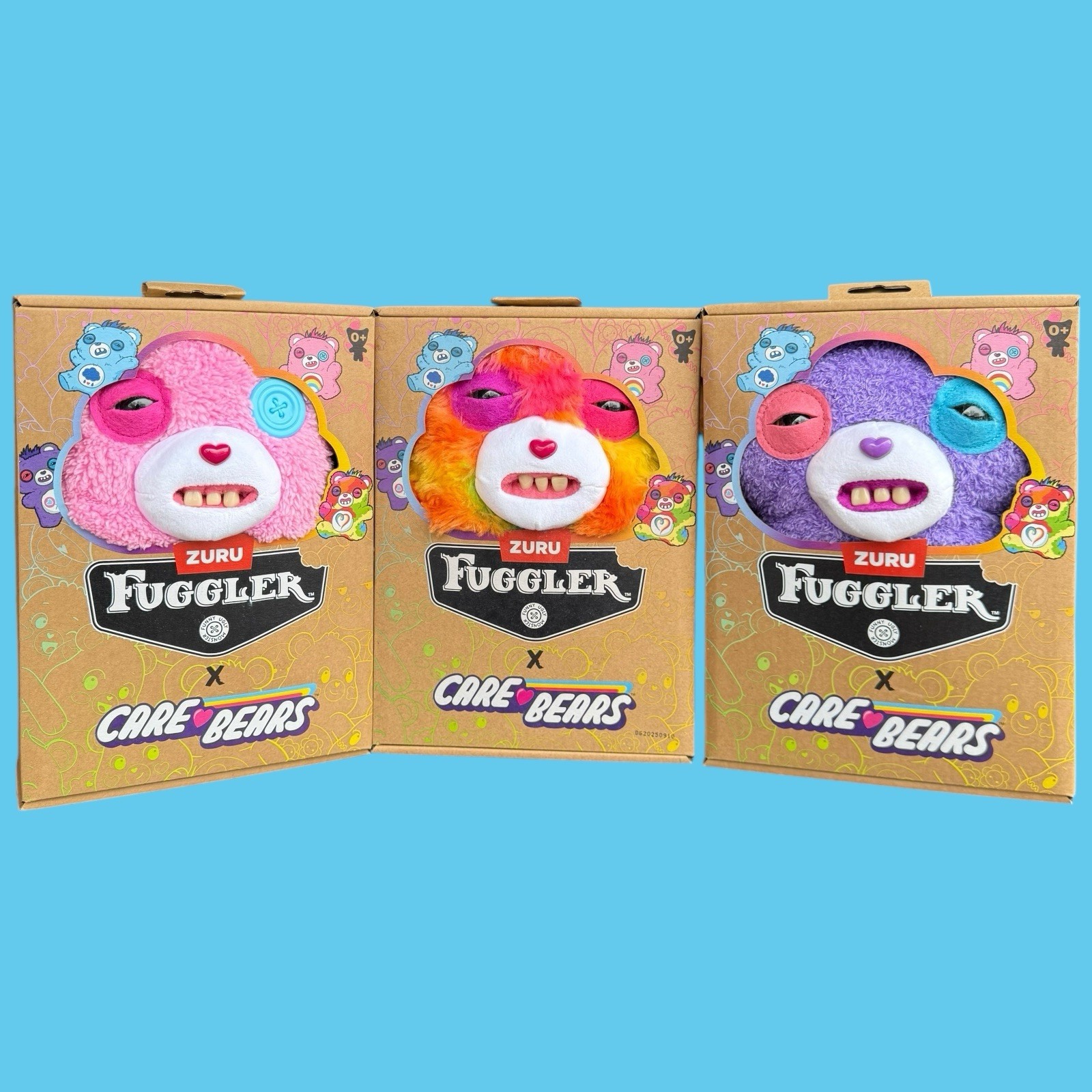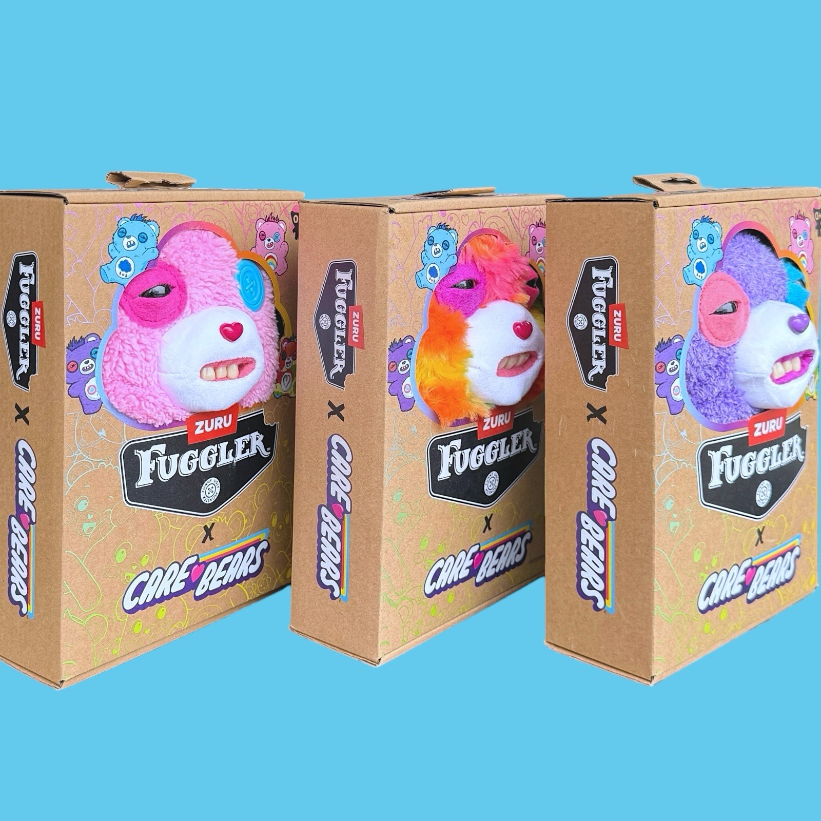 Complete Care Bears x Fuggler - SET of (3) Plush Official licensed crossover combining classic Care Bears with signature Fuggler weirdness. Includes: β’ Share Bear (classic blue) β’ Cheer Bear (pink) β’ Togetherness Bear (tie-dye) Details: β’ Authentic ZURU Fuggler plush β’ Approx. 9β each β’ Signature creepy teeth + soft plush bodies β’ Displayable, collectible, and creepy-cute Perfect for: Care Bears collectors & Fuggler fans SHIPS fast - check out our other listings for more Fuggs!