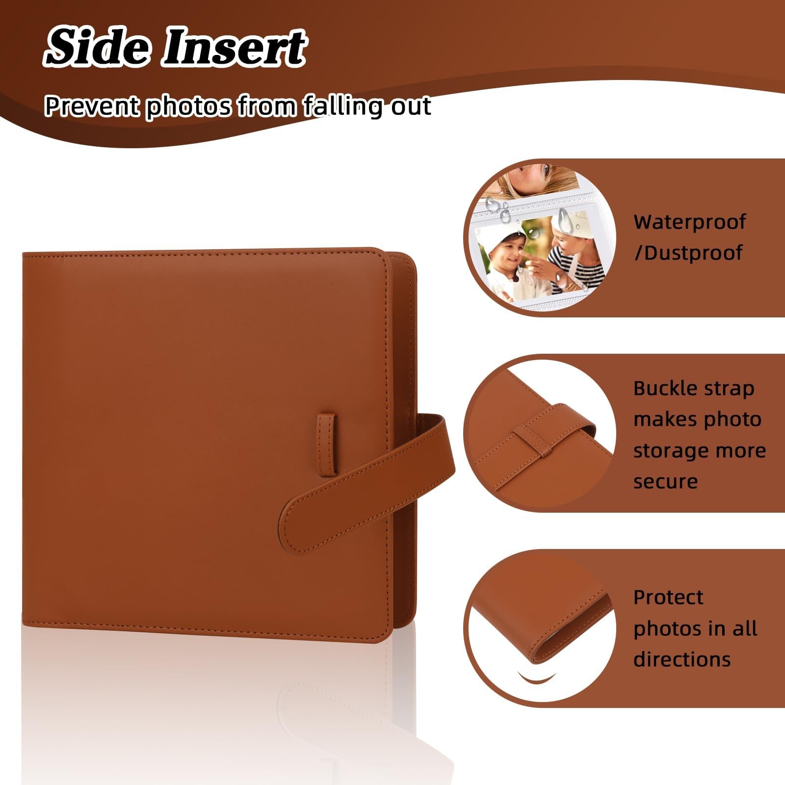 2x3 Mini Film's best companionship 360 Pockets Photo Album-- Devote to the preservation of instax mini films. NOTICE: INSTAX PHOTOS ARE NOT INCLUDED Unique Design Suit for films of Instax Mini camera, Polaroid 300, Polaroid Z2300, Polaroid Snap & Snap Touch camera Suit for films of Instax Share SP-1 SP-2 printer, HP Sprocket printer, Polaroid ZIP Mobile printer, Kodak Mini Mobile Wi-Fi & NFC Photo Printer The album is book style, holds 360 photos in optically clear pockets, 5 photos per side. Quality Assurance All the products are from highest possible quality guaranteed factory. We ensure each of the Instax Mini Film album is made with the finest materials. Every Instax Mini album is from the best workmanship. The most rigorous manufacturing process gives you the superior possible quality assurance. You Deserve It You could use this photo album to organize all your loose photos from the wedding, holidays, and other family events that were once stored in a box. This is a great instax mini album, high quality material, durable and reliable. It would make the perfect gift for your favorite Instax Mini Instant Photographer. Fashionable appearance, practical design and exquisite workmanship, lightweight and extremely durable. Package Included 1 x Instax Mini Album [hold 360 photos] Easy to use, cute appearance Applicable Model : Suitable for Fujifilm Instax Mini EVO LiPlay 12 11 8 9 99 8+70 7s 25 26 40, Instax Share SP-1/SP-2, Polaroid Snap / Snap Touch / PIC-300/Z2300 Camera / ZIP Printer, Kodak Mini Shot / Printomatic Camera / Mini 2 HD Printer, credit cards, business cards and so on. Pocket size: 2x3 inches Album Capacity : The 2x3 mini photo album can hold 360 pockets 2.1x3.4" photos in total, 5 photos per page. 360 beautiful memories can be well preserved in mini polaroid photo album whose appearance is fashionable and cute Unique Design : Book for instax mini 12, Two kinds of photo insertion methods to apply to photos taken in different scenes. With both horizontal and vertical slots on each page, no need to turn the album to view the photos! Side loading pocket design to prevent instax flim from easily falling out. Elastic strap holds the photo book album shut when not in use High Transparency Pocket : Flip through the pages, see through every detail and artwork, No need to take films out of the transparent pocket sheets, It transparency is up to 99%, Restores the true colour of the photo.Great gift for kids to keep their polaroid instax mini photos, For kpop fans to store precious k-pop photo cards Comprehensive Protection : Premium vegan leather cover and clear inner pockets are fashionable and durable. Strong bond between cover and inner pages ensures high quality. Buckle strap makes storing Polaroid pictures more secure Multiple Uses : Can be carried in your bag to show off your best instant photos or left at home as a decoration. Also suitable for Valentine's Day, Christmas, Anniversary, Mother's Day, Thanksgiving Day gift.Travel record album, birthday and anniversary album
