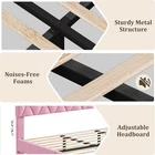 Product description GarveeHome Grey Upholstered Bed Frame with Headboard Diamond Linen Headboard Velcro Design Adjustable Headboard Modern Upholstered Platform Bed Frame with Adjustable Headboard Transform your bedroom into a cozy retreat with the upholstered bed frame! Combining stylish design with ultimate comfort, it features premium materials for lasting durability. Enjoy the perfect support for restful nights and elevate your space with a touch of luxury. Durable metal frame Strong wood slats No box spring needed Sturdy 9 Feets No noise One package