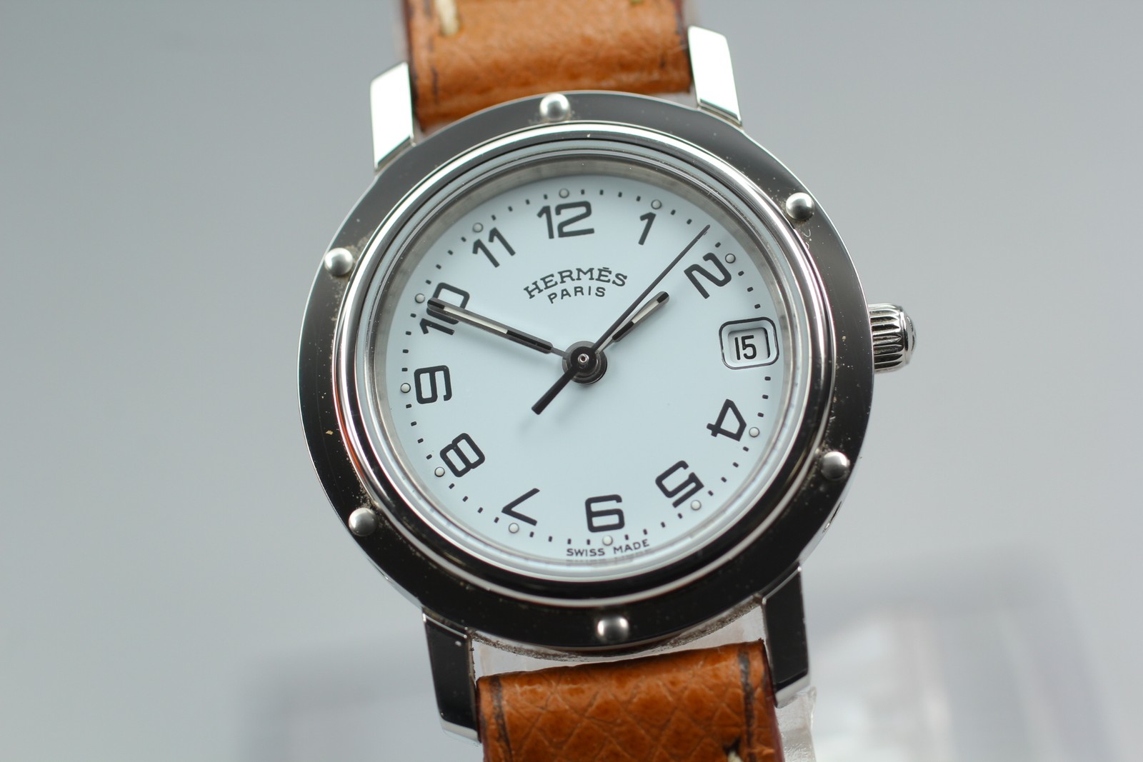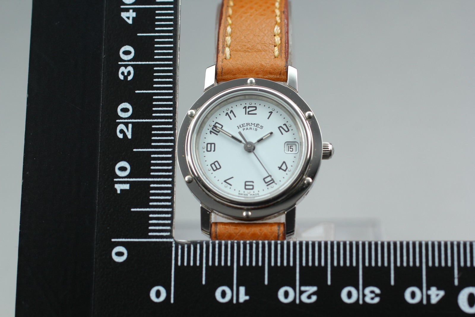 Full Set [MINT] Vintage HERMES Clipper CL4.210 Qz White Dial 24mm Women Watch #55550280 Description Total Condition; MINT Appearance; Appearance is beautiful. It shows minimal signs of use. *Please check photos. Functional; It works properly. The watch is currently running smoothly, but since it is a battery-powered watch, there is a possibility that it will stop during transportation. Please understand that we do not guarantee that this will happen. Please contact me first for return before you ship it back to me. Bundled Items; Box Paper All you can see on the picture will be included in a set of a package. Above condition is based on my own opinion. Please check the photo carefully. Please feel free to contact me for any questions! Thank you. Shipping I send a product by DHL,eBay SpeedPAK Express . I attach the tracking number. Please bid it without worrying. Shipping is available from Monday to Friday. Weekends are not available because office is closed. Returns Unconditional Return Policy Customer service and satisfaction are very important to us. I have an unconditional return policy if notified within 30 days of the receipt of the item. All returned items must be the original condition. All return requests must be made within 30 days of the receipt of the item. Please contact me first for return before you ship it back to me. The postage of the returned goods is a buyer burden. International Buyers Please Note: Import duties, taxes, and charges are not included in the item price or shipping cost. These charges are the buyer's responsibility. Please check with your country's customs office to determine what these additional costs will be prior to bidding or buying.