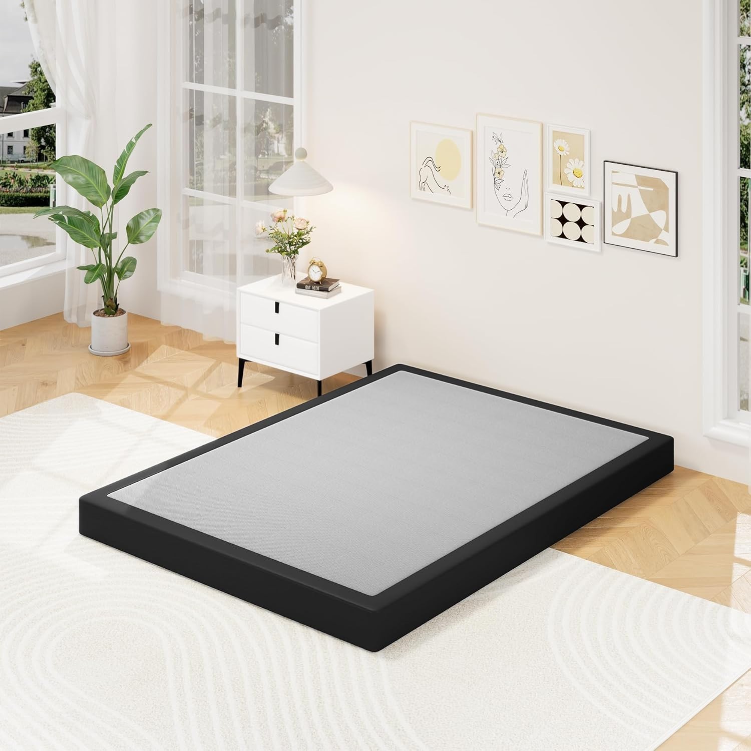 **About this item** * **Sleek 5-Inch Profile:** This 5-inch full-size box spring is ideal for those who prefer a lower bed height or are pairing it with a thicker mattress. Compatible with innerspring, memory foam, and latex mattresses. Rounded corners help reduce the risk of accidental bumps or injuries. * **Noiseless and Comfortable:** Each pole and support frame is fully welded at both ends to prevent movement, distortion, and squeaking. The solid, noise-free structure ensures peaceful and uninterrupted sleep, even with frequent movement. * **Heavy-Duty Metal Construction:** Built with reinforced steel and durable metal slats, this full box spring supports up to 3,000 lbs. It delivers exceptional strength, stability, and long-lasting mattress support for single or shared use. * **Easy to Clean:** Features a high-quality fiber cover that is breathable, wrinkle-resistant, and shrink-resistant. Elastic bands allow for easy removal, making cleaning simple and helping maintain a fresh, hygienic sleeping environment. * **Easy to Assemble:** Designed for quick and hassle-free setup. All required tools are included, and the integrated construction allows assembly in minutes.