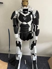The product is a life-size wearable Iron Man Suit Starboost Mark 39, made from 3-D printed PLA Plus. I hand painted everything myself and put everything together. I want to preface this by saying that this will not be perfect, there will be some parts that aren't perfect and that is due to that fact that this is handmade. However, I did spend almost two years on this and I am very proud of it. The hands and the chest arc reactor light up with battery packs and LEDs. The picture with the whole suit does not have the hands on because I was installing the lights but they can be connected on when putting the whole suit up This will come disassembled due to the size and will include the PVC pipe stand I used to prop it up. The whole thing is wearable but does need an extra person to help wear it. I can put on about half the suit by myself. However, more tweaks might be needed for each individual person for different body types. Mainly is used for a display piece. Please feel free to ask any questions at all about the suit.