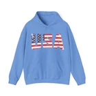 This USA Flag Text Printed Men Hoodie is a stylish and patriotic addition to any wardrobe. The unique design features a bold American flag print, making it a perfect way to show off your national pride. Made with high-quality materials, this hoodie offers both comfort and durability, making it a practical and fashionable choice. Represent your country in style with this must-have hoodie Overview; This heavy blend hooded sweatshirt is relaxation itself. Made with a thick blend of cotton and polyester, it feels plush, soft and warm, a perfect choice for any cold day. In the front, the spacious kangaroo pocket adds daily practicality while the hood's drawstring is the same color as the base sweater for extra style points. Fabric; Made with a medium-heavy fabric (8.0 oz/yd² (271 g/m²)) that consists of 50% cotton and 50% polyester for that cozy feel and warmth you need in a hoodie. Fit; The classic fit along with the pouch pocket and the tear-away label make for a highly comfortable, scratch-free wearing experience. The color-matched draw cord and the double-lined hood add a stylish flair and durability that tie everything together Fabric blends; Heather Sport colors - 60% polyester, 40% cotton.