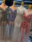 The MkZariwala Full-Length Front and Back Panel Dress Fabric with Crystal Detailing is a medium-weight mesh/net fabric perfect for wedding-themed apparel such as dresses, beaded attire, dance/sportswear, bridal gowns, couture designs, and crafts. Handmade with intricate crystal detailing, this fabric offers a luxurious and elegant touch to any garment or craft project. Ideal for creating exquisite and detailed pieces that are sure to make a statement at any special occasion. Garment Measurement in inches 20 Bust 18 waist 22 Hip 65 lenght