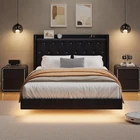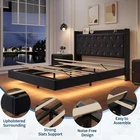 Storage Headboard:Keep things right within arm’s reach—no more fumbling around in tFrame Material:SteelType:Bed FrameCompatible Mattress Size:Full, QueenFloating Design:The innovative design prevents stubbed toes while creating a stunEasy to Assemble:Comes with clear instructions,all the pieces are clearly labeled,Robust, Long-Lasting Build:Heavy-duty wooden slat support system. Sturdy steel frameBrand:GAOMONLED Light:Controllable via app,to set the perfect mood with various colors