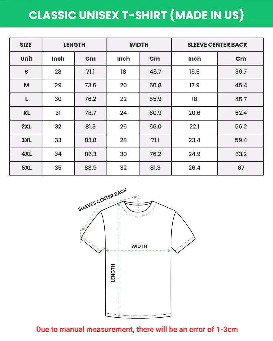 THANK YOU FOR VISITING OUR SHOP Material: 100% Cotton Colors: Various colors, please refer to the color chart for options Sizes: S, M, L, XL, 2XL, 3XL, 4XL, 5XL We have a size chart in the picture, please refer to it and choose the appropriate size. Shipping: Processing time: 1-5 business days Shipping time: 5-7 business days Contact Us: Please give us the opportunity to resolve any issues. We understand the concerns and disappointments you may encounter and will do our best to address the problem. Do not hesitate to ask us if you have any questions. We will respond to your inquiries as soon as possible.