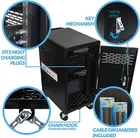 Charging Cart * Security Cabinet * Key Lock Charging Station * Castor Wheels * Cable Management FULLY ASSEMBLED — Say goodbye to tedious assembly! POCHAR's 16-unit laptop charging cart comes fully assembled - all you need to attach are the wheels, handlebar, and power cord racks on the side. Hardware is included with this charging station for laptops for immediate usage! CABLE MANAGEMENT — Our tablet charging carts come with zig-zag pattern on the dividers for locking in the charger cords, so you can keep your cables organized. Each computer cart comes with adhesive cable clips to provide you additional cable management and cord organization. FITS MOST TABLETS — Our laptop charging station is designed to fit devices up to 14-inch screensize and 1-inch thick, compatible with Chromebook, Kindle, Amazon Fire, Galaxy Tab, iPad Mini, small laptop, and other common devices in classrooms, offices, restaurants, and more. DEVICE SECURITY — The automatic flush bolt locks in the front and back doors can only be unlocked using the designated key, preventing unauthorized personnel from accessing the devices. In addition, there is a hook at the bottom to secure your cart with a chain (chain not included). SAFETY DESIGN — Our laptop charging carts have rounded corners on the top to prevent injuries in busy spaces, and the steel frame can support up to 200 lbs. All sides of this laptop charging station for multiple laptops ensures great air flow for our ventilated storage cabinet. DETACHABLE DOORS — Both doors of our laptop rack for multiple laptops can be completely removed, so you do not have to constantly pushing the doors away while organizing the tablets. Once you are ready, simply put the doors back and turn the lock to secure the devices. USER FRIENDLY — Our C16 tablet charging cart comes with 3-inch compartment at the bottom for storing your chargers. Each outlet and divider corresponds to one device for optimized management. In addition, this cart has printed numbers in the front for easy and quick identification. COMPATIBLE PRODUCTS Laptop Cell Phone Tablet Camera battery Rechargeable battery Power bank Bluetooth devices PRODUCT FEATURES AC charging for multiple devices Locking security cabinet with key Swivel locking castor wheels Push / pull handlebar for easy transport Door opens 270° to fully opened positioned Rear door access for easy cable management Vented enclosure Heavy duty galvanized steel frame Grounding wire helps prevent electrical shock Product guarantee ensures 1 year operation including replacement parts PRODUCT SPECIFICATIONS Length: 23.75" Width: 15.5" Height: 32.25" Weight: 63 lbs. Number Charging Ports: 20 Ground Wire Included: Yes Surge Protection: Yes Stationary Chain Hook: Yes Tablet Screen Size: 14" Device Thickness: 1" Bottom Storage: Stores additional chargers inside cabinet 2.75" shelf RECOMMENDED USAGE Great for business, organizations, debate teams, medical office, law office, and schools Charging station for laptops, tablets, cell phones, rechargeable battery, or power banks Heavy duty steel enclosure provides anti-theft, tamper proof protection Mobile charging can safely transport many devices PRODUCT CONTENTS (1) Charging cart (2) Caster wheel with brakes (2) Caster wheel without brakes (1) Handlebar (2) Wire rack (1) Hardware pack (2) Key for door lock (1) Instruction manual This item is brand new . If you are interested interested in our open box discount visit our eBay store. All POCHAR products are sold with a one (1) year manufacturer warranty including replacement parts. Check our eBay Store Front for more listings! POCHAR Sales | eBay Stores Thanks for shopping POCHAR! The actual color of the product may be different from the image you see. This is due to the fact that every computer monitor, laptop, tablet and phone screen has a different capability to display colors and that everyone sees these colors differently. We try to edit our photos to show all of our products as life-like as possible, but please understand the actual color may vary slightly from your monitor.