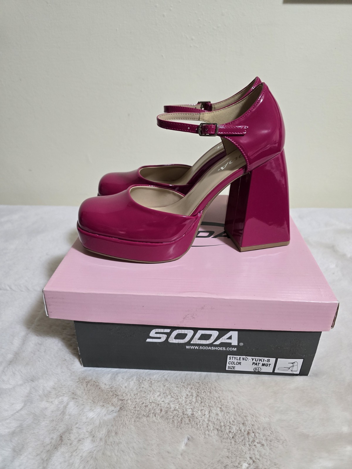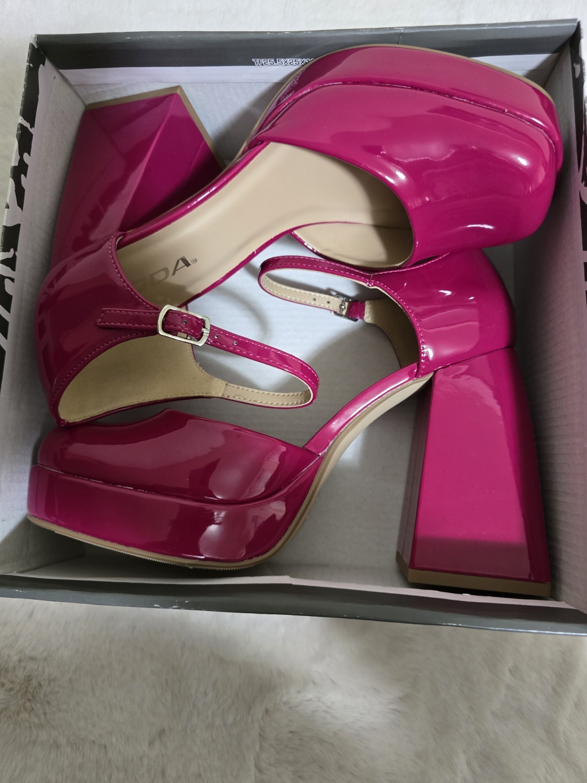 These funky hot pink ankle strap pumps for women feature a square toe and a chunky heel, perfect for formal occasions like weddings and parties. The ultra-high heel adds a touch of glam, while the eyelet accents and PVC lining give the shoes a unique style. The platform height of 3 inches provides added comfort and stability, making them ideal for all-day wear. The synthetic upper material and polyurethane insole ensure durability, while the rubber outsole provides traction. Whether you're going for a Barbie-inspired look or a more edgy vibe, these heels are sure to make a statement.