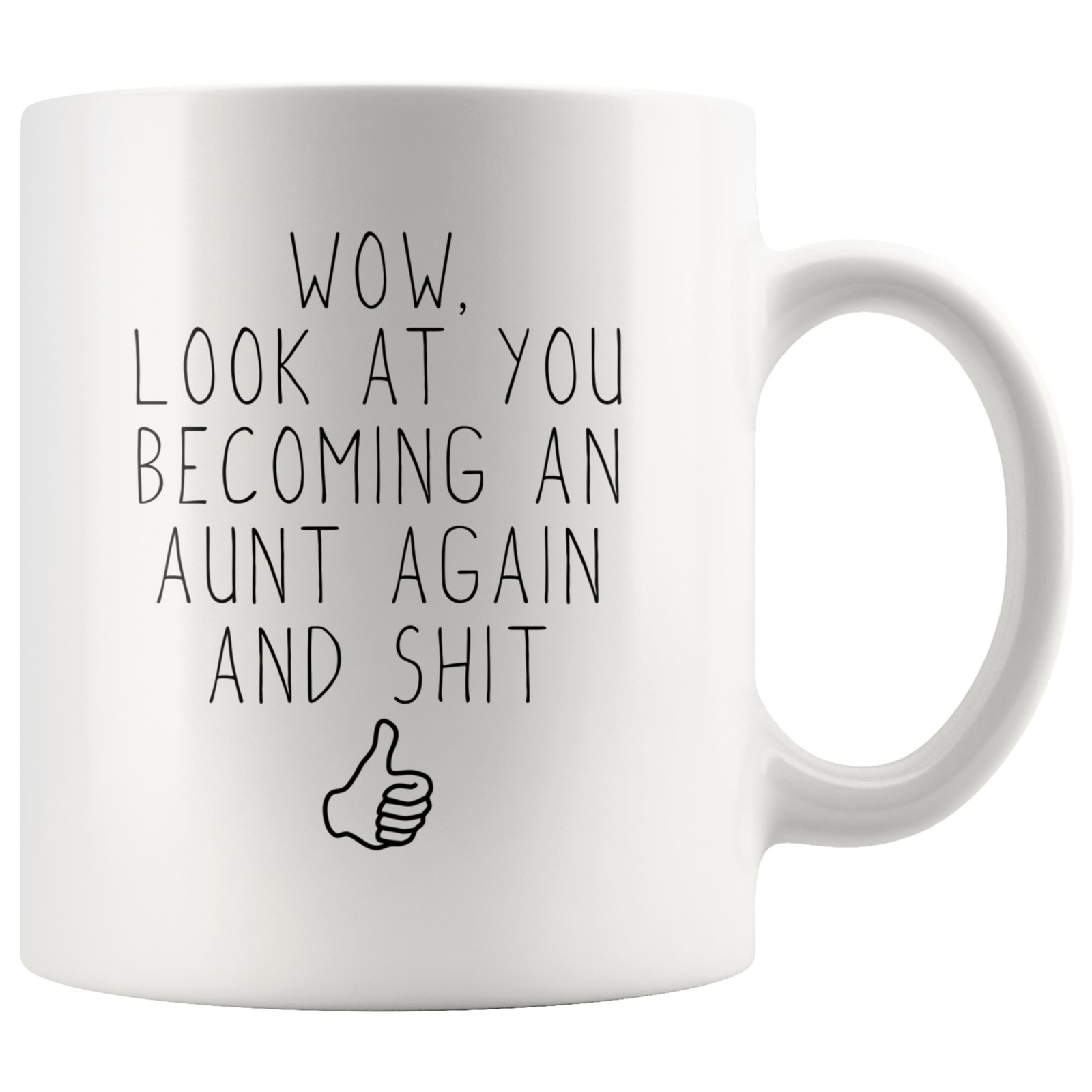 Aunt Again Pregnancy Announcement New Aunt Gift Aunt To Be Funny Aunt Gift Aunt Product Details.. This high quality 11oz. ceramic white mug has a premium hard coat that provides crisp and vibrant color reproduction sure to last for years. Perfect for all hot & cold beverages. The highest quality printing possible is used. It will never fade no matter how many times you wash it. Material: 100% Ceramic. Print both sides. Dishwasher and Microwave Safe. High Gloss + Premium White Finish. Printed in the U.S.A. Personalized & Custom. We support personalized and custom mug to add custom, when placing an order, you can add notes to the "order note" in shipping address section. Also you can contact us directly via message. Shipping Info. Ready to ship in 1 to 2 business days, All products are made-to-order and proudly printed in the United States. Shipped by USPS and DHL, You will receive your order in 5-7 days. Replace & Refund. All products are defective during shipping broken, chipped will be replaced free of charge. You are not satisfied with the product, we will refund 100% money to you. If any other issues arise, please do not hesitate to message, we would be more than happy to assist you.