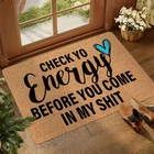 This doormat is a total vibe! The "Check Yo Energy" message cracks me up every time I see it, and guests love it too. Super sturdy, stays in place, and wipes clean easily—perfect for indoor or outdoor use. Adds a fun touch to my entryway while keeping dirt out. Highly recommend for anyone who loves a little humor at their doorstep!