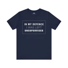 Upgrade your wardrobe with our Unisex Slim Fit round neck T-Shirt, featuring our humorous text. Made with high quality materials, this shirt offers comfort and style. Perfect for any occasion, show off your fun side with this one-of-a-kind shirt. Available in a variety of sizes for the perfect fit. Overview: This classic unisex jersey short sleeve tee fits like a well-loved favorite. Soft cotton and quality print make users fall in love with it over and over again. These t-shirts have-ribbed knit collars to bolster shaping. The shoulders are tapered for a better fit over time. Dual side seams hold the garment's shape for longer. Fabric: Made with 100% Airline combed and ring-spun cotton, a lightweight fabric (4.2 oz/yd² (142 g/m²)) that is easy to layer, breathable. Perfect for active and leisure wear. Fit: The retail fit that is perfect for casual and semi-formal settings. The crew neckline adds a classic, neat style that's perfect for accessorizing. Fabric blends: Ash and Heather Prism colors - 99% Airlume combed and ring-spun cotton, 1% polyester; Heather and Solid Blend colors - 52% cotton, 48% polyester; Athletic Heather and Black Heather - 90% cotton, 10% polyester. Origin ; manufactured in the US and internationally in humane, no-sweatshop, sustainable way.