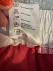 See photos. There are a few pink spots on the waistband. (See photos Measurements) Measurements: Waist 31-35” Inseam shorts 8” Inseam pants 29” Overall length 40” *h