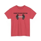 Introducing the perfect addition to your casual wardrobe: a Unisex Heavy Cotton Tee that effortlessly blends comfort with style. Made for those who appreciate a relaxed fit, this tee is ideal for everyday wear, workouts, or lounging at home. Its soft texture and breathable fabric create a cozy vibe, making it suitable for a variety of occasions. Whether you're celebrating a birthday, enjoying a casual get-together, or just want to express your fun side, this tee is your go-to choice. Its humorous message adds a playful touch, appealing to fitness enthusiasts and food lovers alike, making it a fantastic gift for friends and family. Embrace comfort and style this holiday season and beyond with this versatile classic. Product features - Shoulder tape to stabilize seams and prevent stretching - Seamless design reduces fabric waste and enhances appearance - High elasticity ribbed collar retains shape - Made from soft, smooth fabric perfect for printing - Classic fit for a relaxed, timeless look Care instructions - Non-chlorine: bleach as needed - Do not iron - Do not dryclean - Machine wash: cold (max 30C or 90F) - Tumble dry: low heat