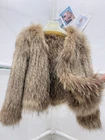 $ 195.332025 Women Raccoon Fur Natural Color Double-sided Woven Fur Jacket Short Outwear