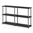 Furinno Turn-N-Tube Series storage shelves comes in 2-3-4-5-Tiers and variety of width and depth. This series of products also includes difference sizes width, height and different fun colors. This series is designed to meet the demand of fits in space, fits on budget and yet durable and efficient furniture. It is proven to be the most popular RTA furniture due to its functionality, price, and the no hassle assembly. The DIY project in assembling these products can be fun for kids and parents. There are no screws involved, thus it is totally good to be a family project. Just turn the tube to connect the panels to form a storage shelf. The materials comply with particle board for furniture processed from parts of rubber trees. There is no foul smell of chemicals, durable and it is the most stable medium density composite wood used to make RTA furniture. Care instructions: Wipe clean with clean damped cloth. Avoid using harsh chemicals. Pictures are for illustration purpose. Features: Material: CARB compliant composite wood, PVC tubes, engineered wood Finish: Black, gray Simple stylish design comes in multiple color options, is functional and suitable for any room. Fits in your space, fits on your budget. Sturdy on flat surface. Easy no hassle no tools 5-minutes assembly even a kid can accomplish. Rounded edge design prevents potential injuries. Specifications: Product Dimensions: 29.5"H x 47.2"W x 11.6"D Product Weight: 23.5 lbs Weight Capacity: 30 lbs per shelf