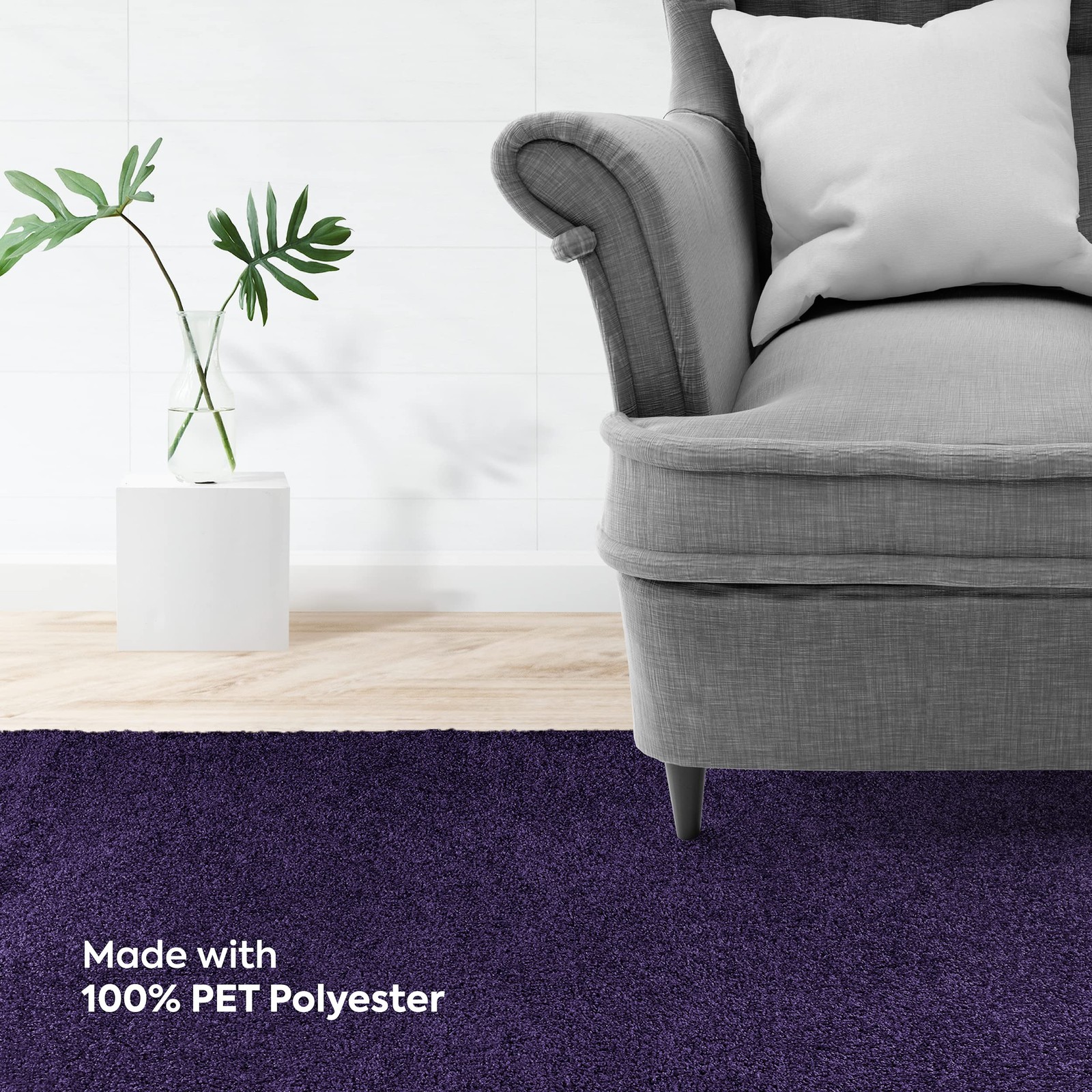 Made In The USA: This pet friendly rug in solid color is machine made in the USA. It is perfectly sized for use indoors at office receptions, dorm, living room, dining room, kitchen, bedroom, play room or bedroom. Material Used: Made from premium-quality polyester, this modern area rug withstands the test of time. Furnishmyplace has been a trusted brand in home furnishings, providing high-quality products. The area rug has a thick plush surface that makes walking across the room extremely comfortable. Quality Design: Tough enough to deliver quality use for years, this kid's room rug is suitable for households with pets. You can easily clean it by washing it with mild detergent and water or regularly scrape off the extra dirt and grime. Accent Area Rug: Add an element of visual interest to your interiors with this superb indoor rug. This rug is perfect for adding a distinctive decor element to your classic or contemporary indoor scheme. Product Specifications: Furnishmyplace Polyester Rug is available in a Purple color. This solid color rug is Set of 5 - 1.5'x2.25' with a pile height of 0.4 in. with various colors and sizes available, you will easily find these rugs to harmonize with your decor.