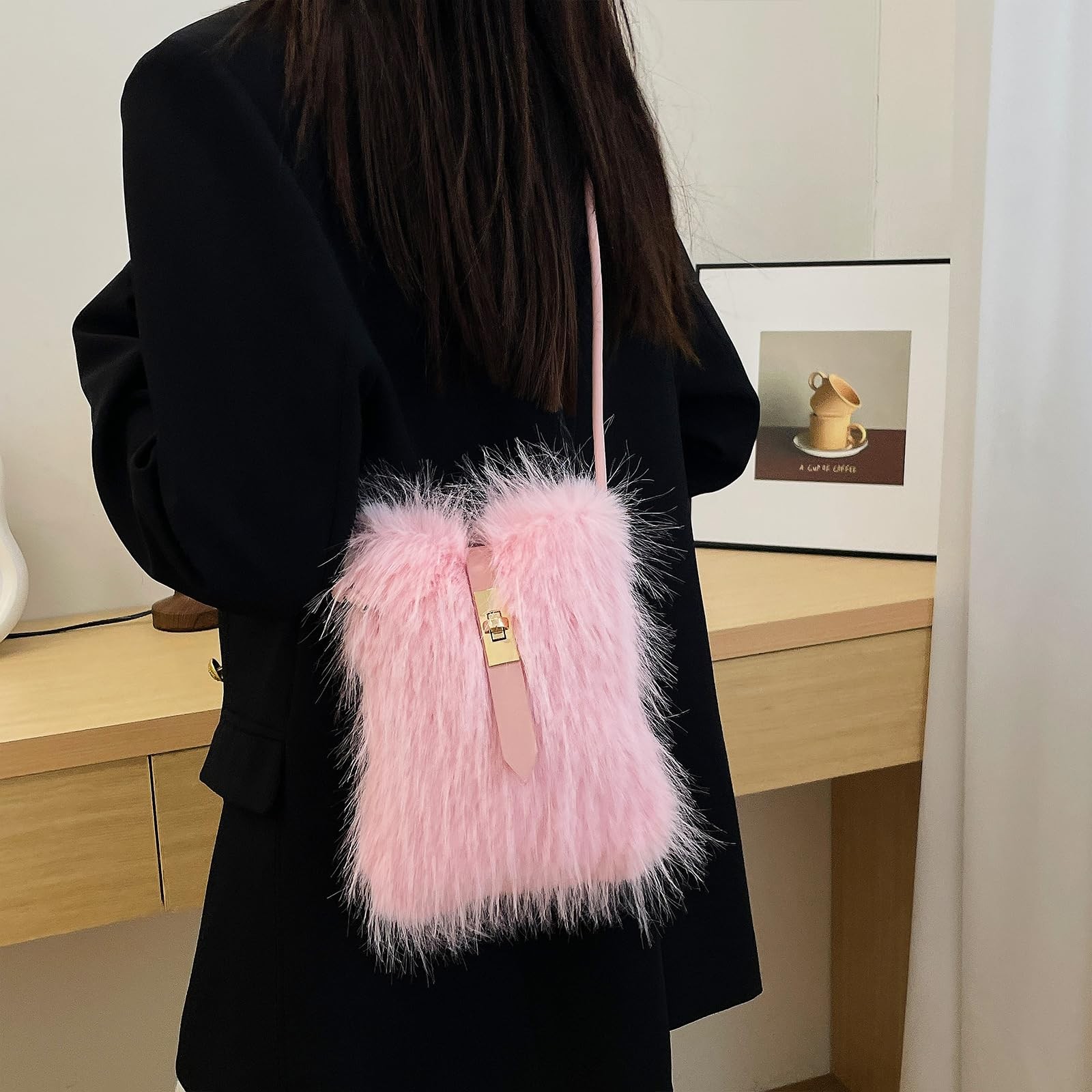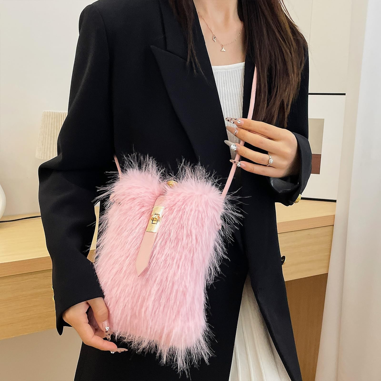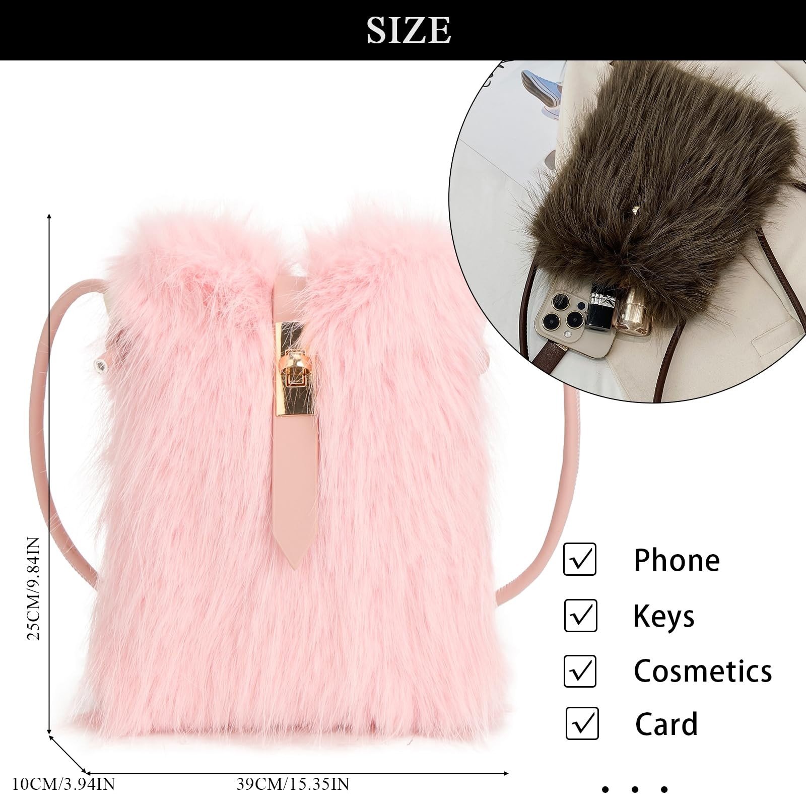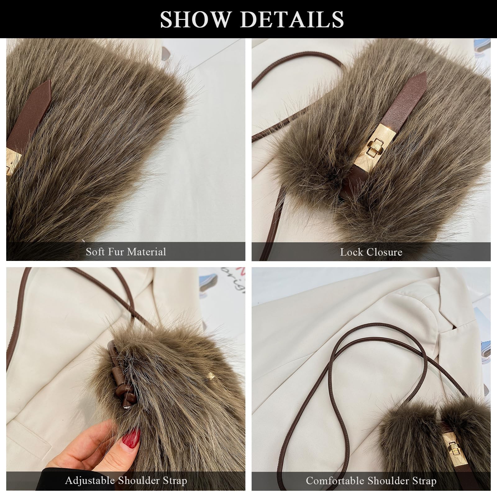 Furry Purse, Faux Fur Crossbody Bag Y2K Fluffy Bag Fuzzy Purses for Women Specification: ① Name: Furry Purse ② Material: Faux Fur ③ Size: A: 16*1*20cm/6.30*0.39*7.87in B: 17*2*22cm/6.69*0.79*8.66in ④ Shoulder Strap: 100cm/39.37in ⑤ Closing Method: Hook-and-Eye Packing List: 1 * Furry Purse 🌎 Material: This faux fur bag is made of high-quality fur, the plush is thick and fluffy, soft and comfortable to the touch, and looks fashionable and cute. 🌎 Size: The size of this fur purse is 17*2*22cm/6.69*0.79*8.66in, which is compact and can store small items such as mobile phones, lipsticks, headphones, keys, etc. 🌎 Structure: The fur crossbody bag adopts hook-and-eye closure, which is easy to open or close, and comes with a 100 cm/39.37 inch long shoulder strap for easy carrying. 🌎 Matching: The fluffy bag adopts a unique Solid color fur design, the furry bag body is simple, fashionable and cute, and can be matched with any clothing such as skirts, jeans, T-shirts, etc. 🌎 Occasion: The furry purse is very suitable for parties, travel, shopping, dating, work, daily life and other occasions. You can also send it to your family, friends, etc. I believe they will like it.