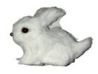 Furry White Bunny Figurine 3.5" Long Cute Faux Fur Easter Holiday